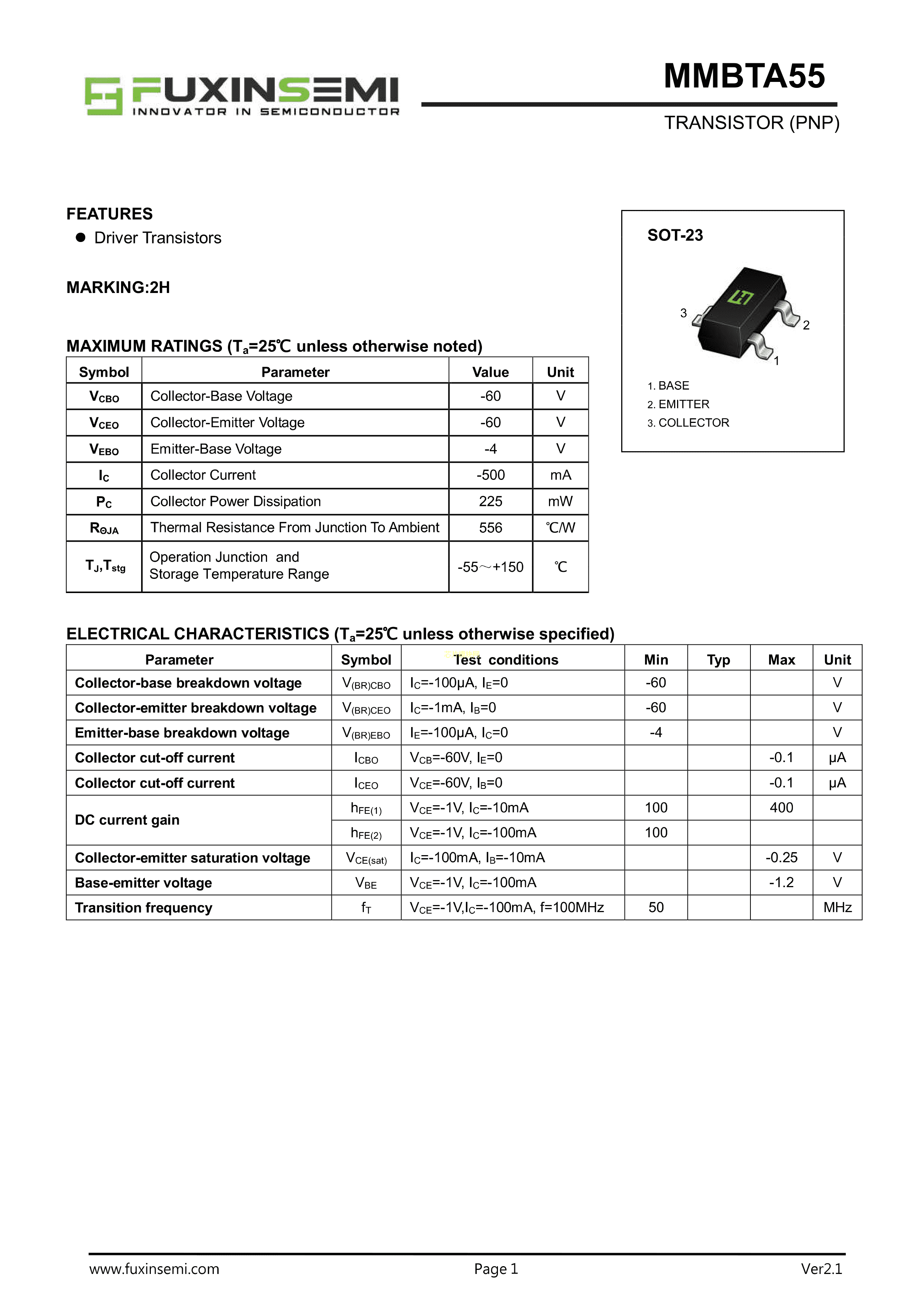 MMBTA55数据手册SOT-23封装FUXINSEMI(富芯森美)PDF规格书,中英文下载