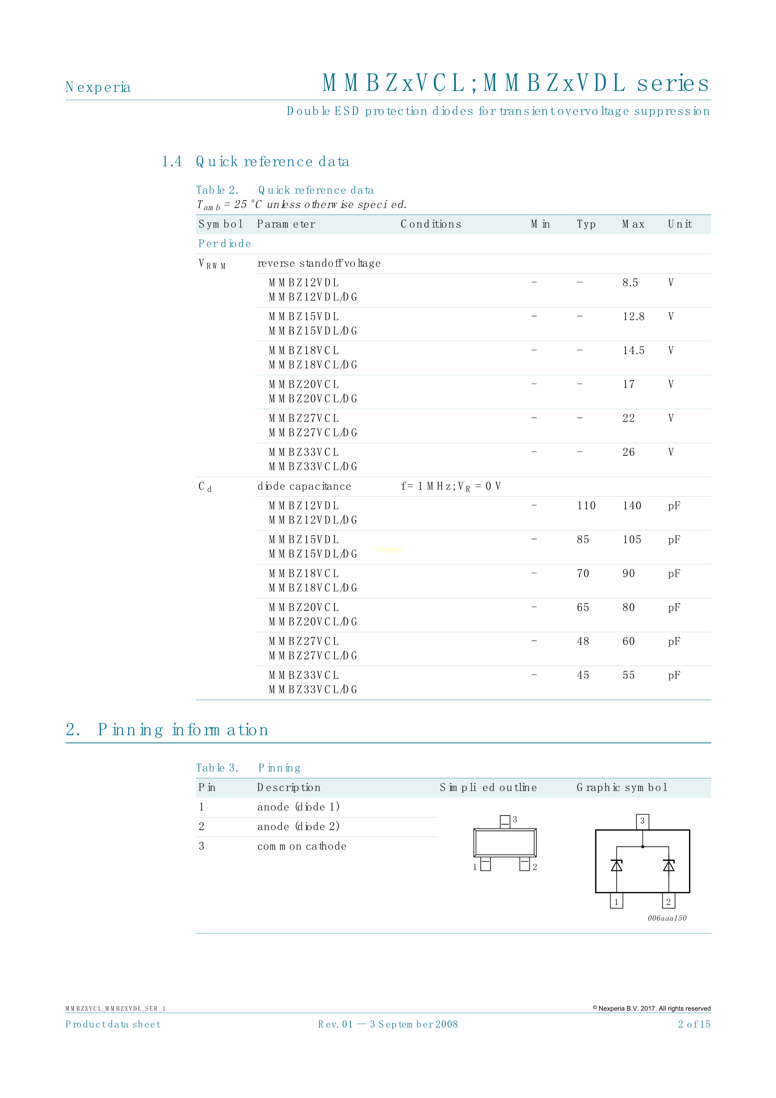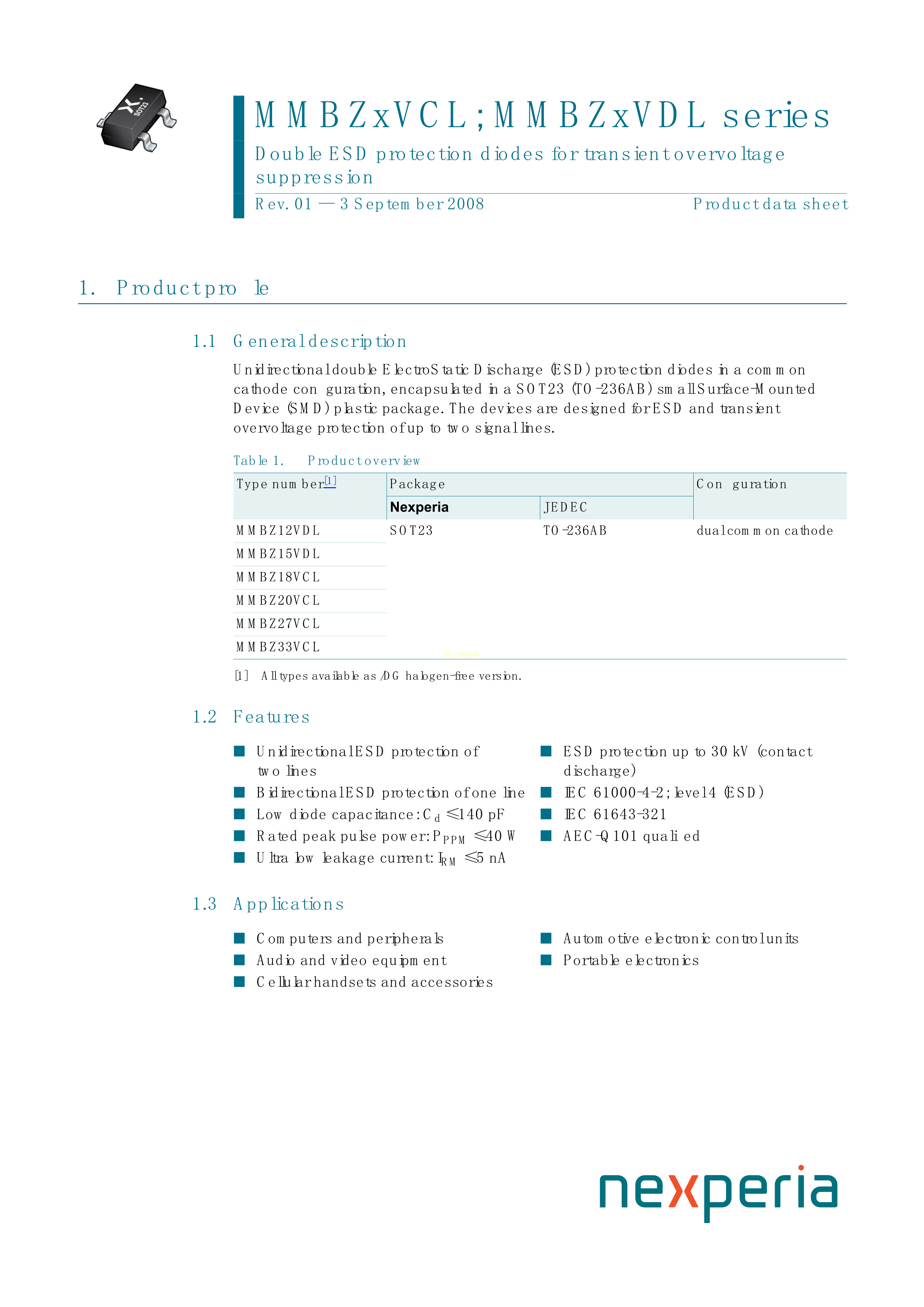 MMBZ12VDL215数据手册SOT-23封装Nexperia(安世)PDF规格书,中英文下载