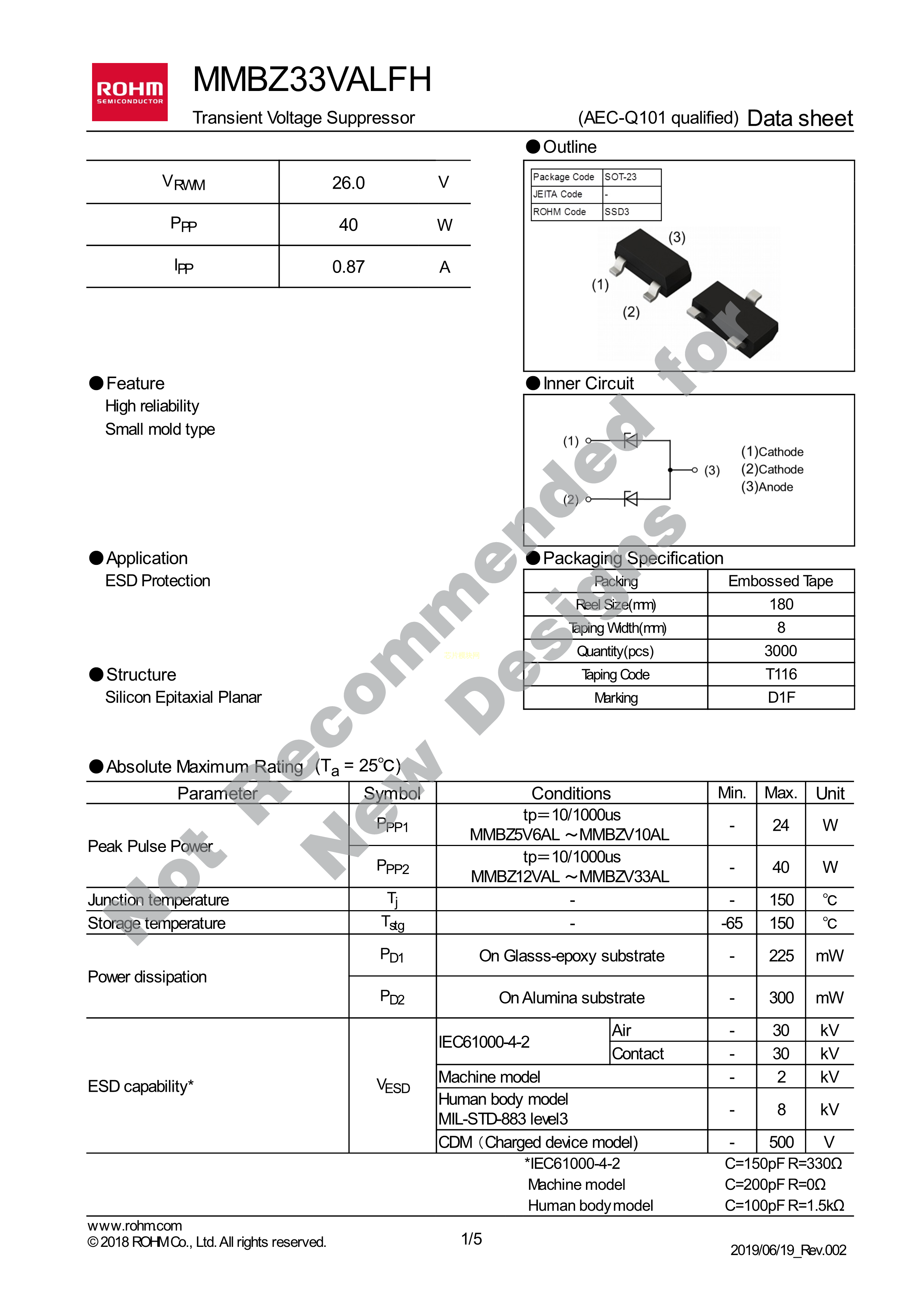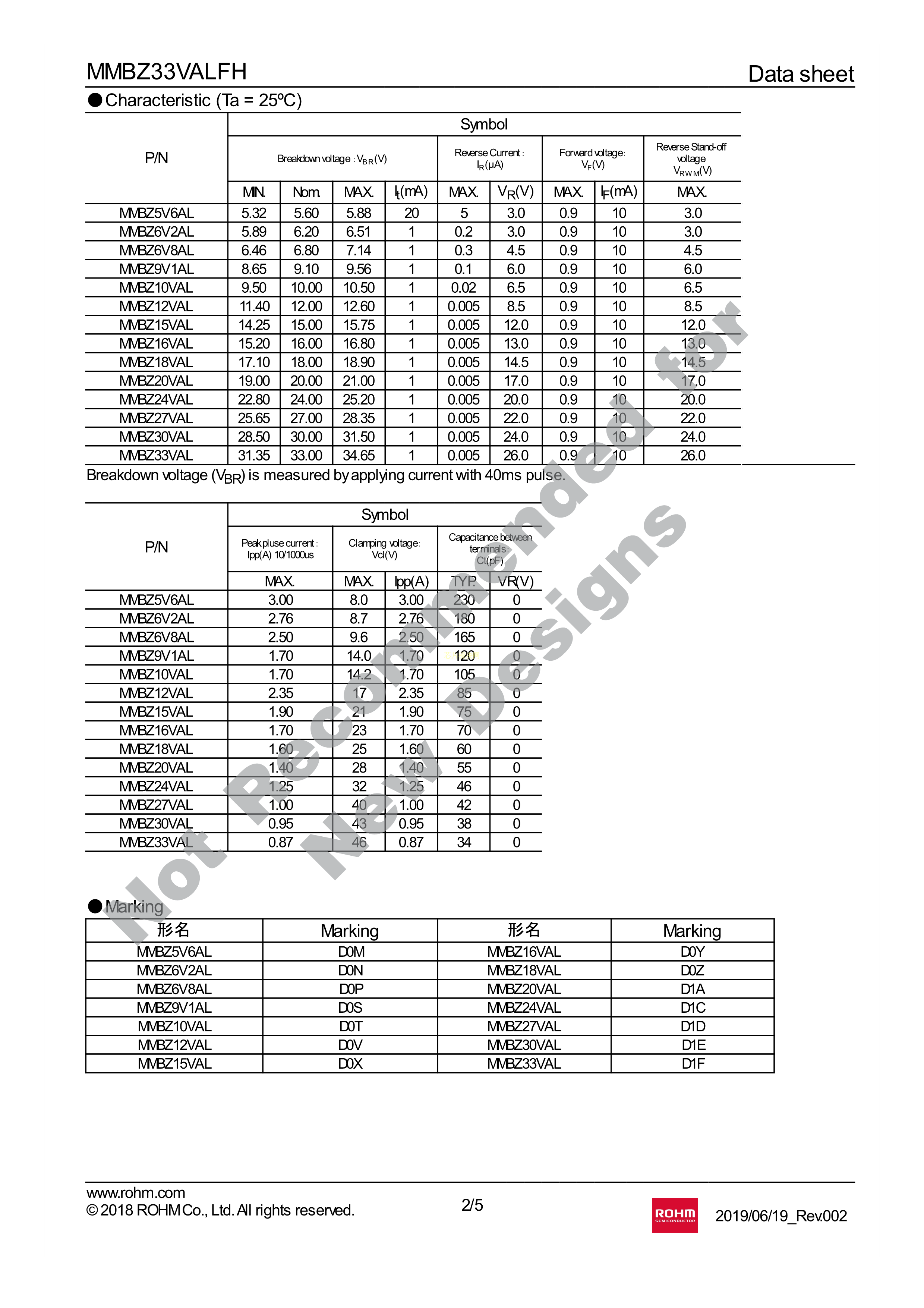 MMBZ33VALFHT116数据手册SOT-23封装ROHM(罗姆)PDF规格书,中英文下载