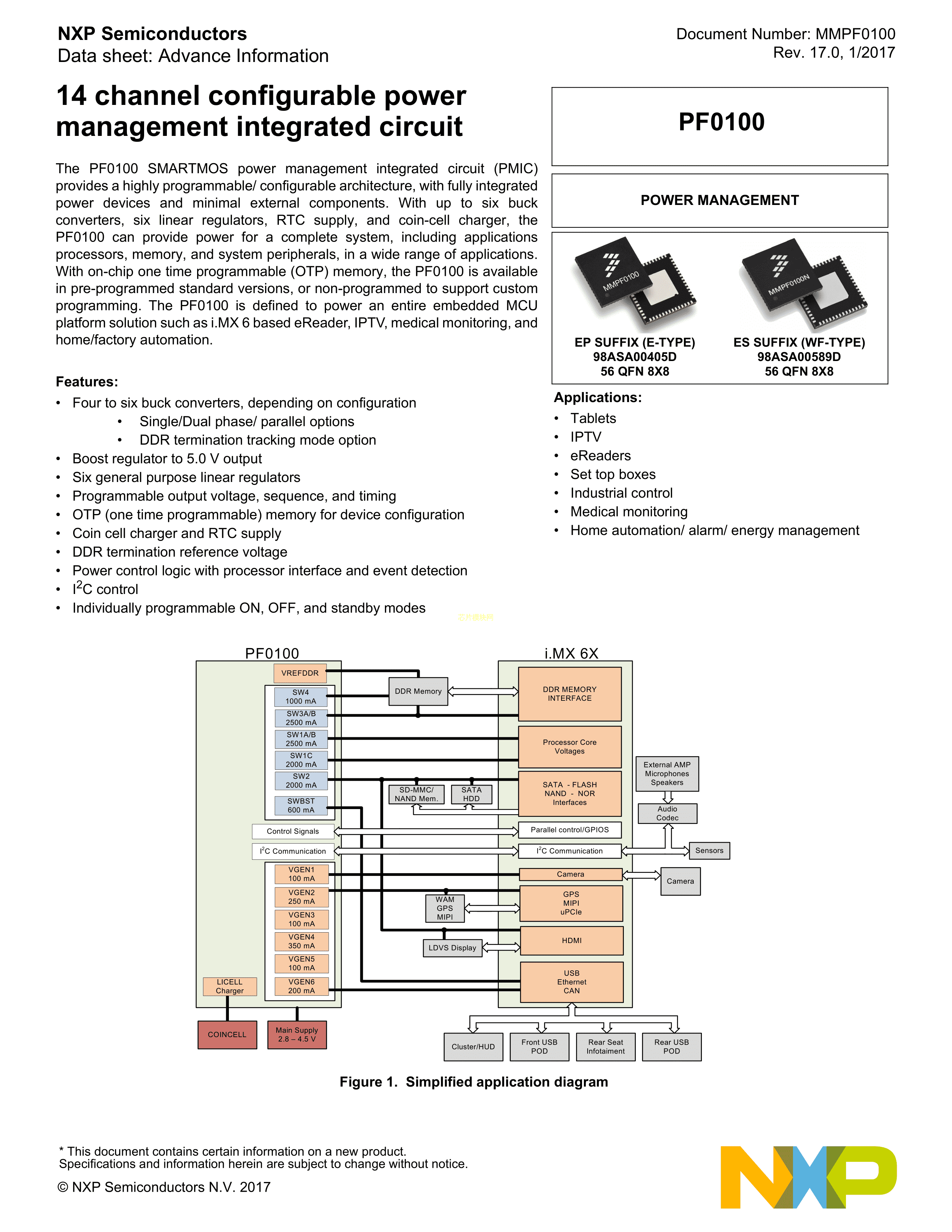 MMPF0100F0AEP数据手册QFN-56封装NXP(恩智浦)PDF规格书,中英文下载