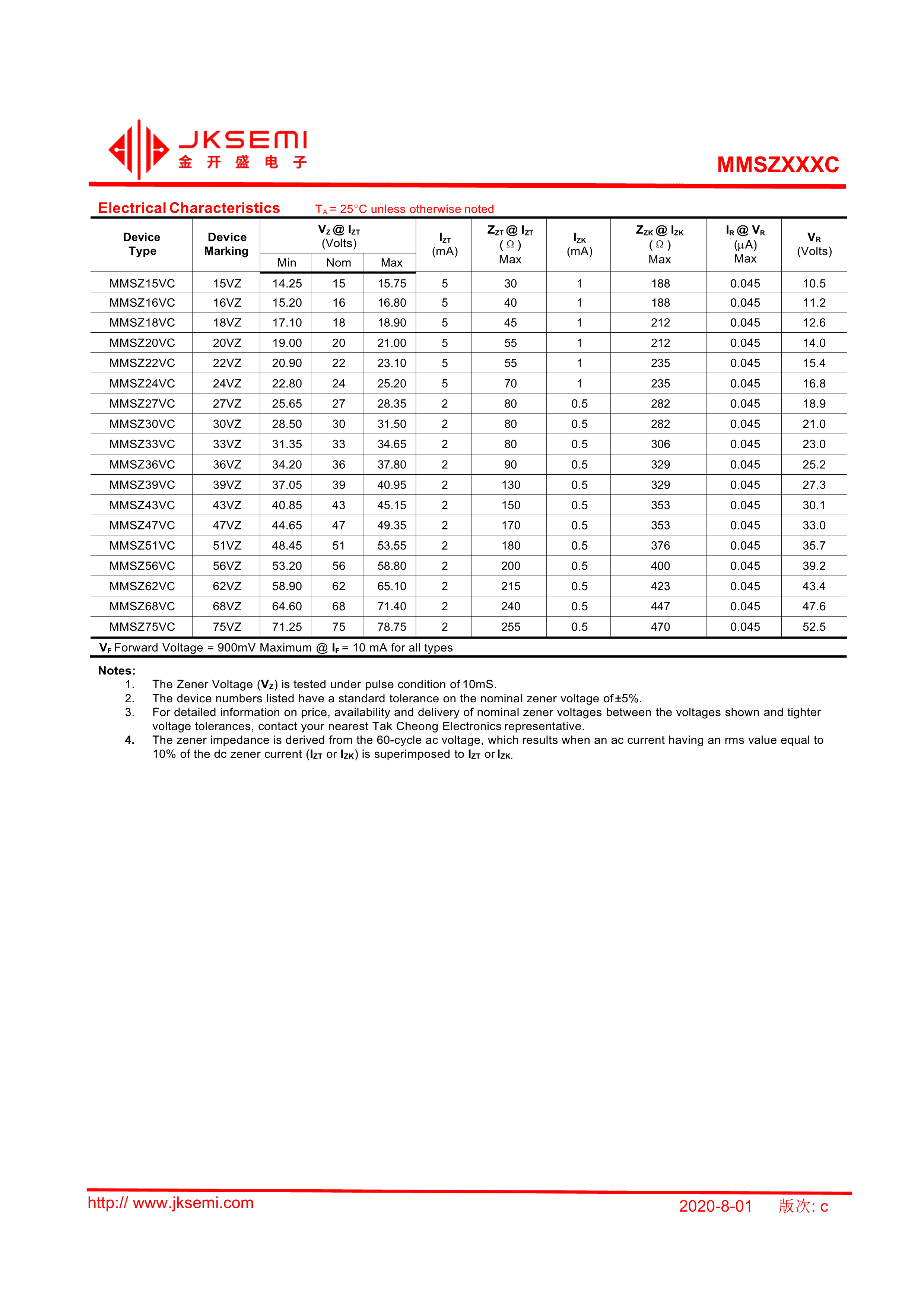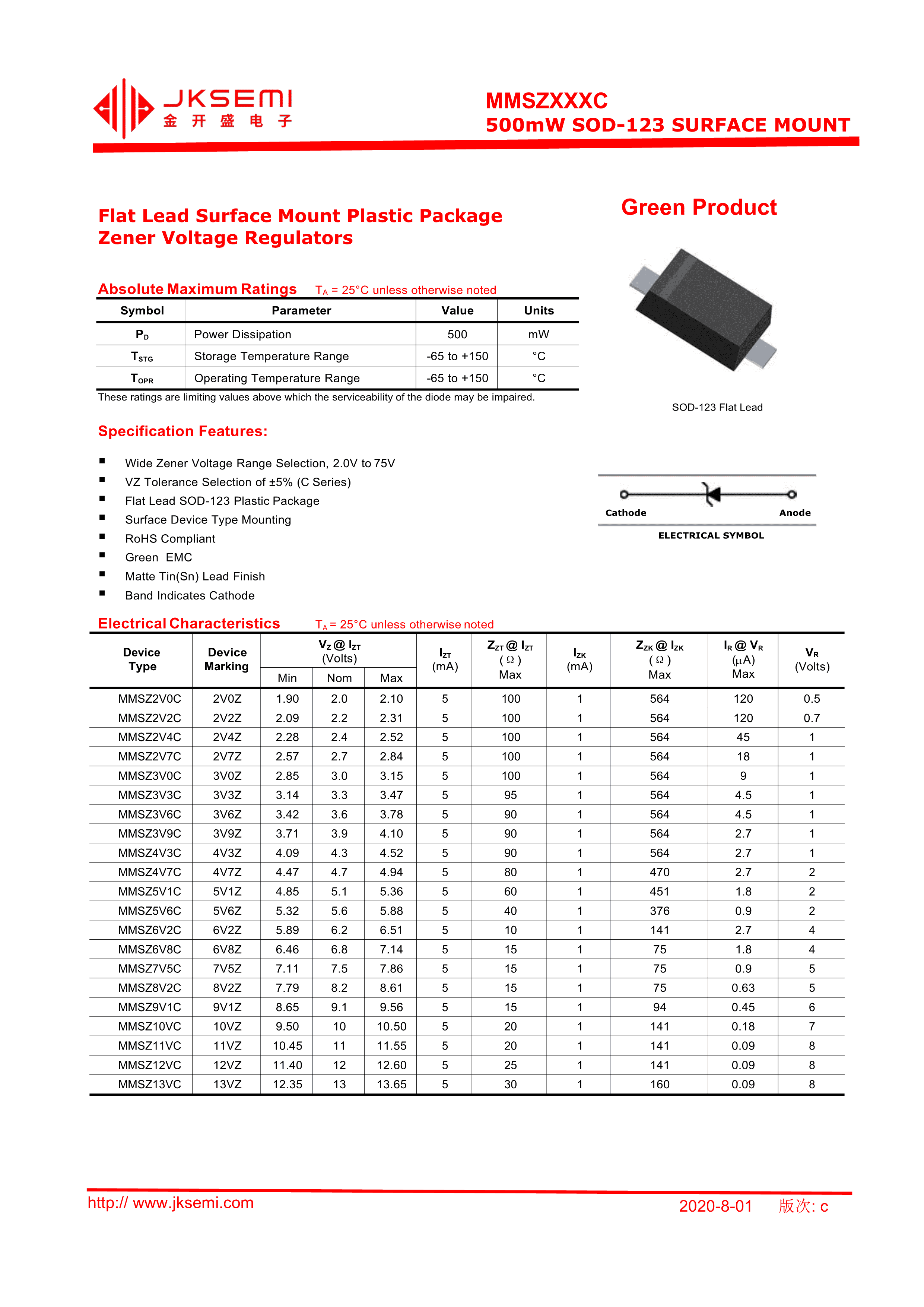 MMSZ27VCW数据手册SOD-123封装JKSEMI(金开盛)PDF规格书,中英文下载