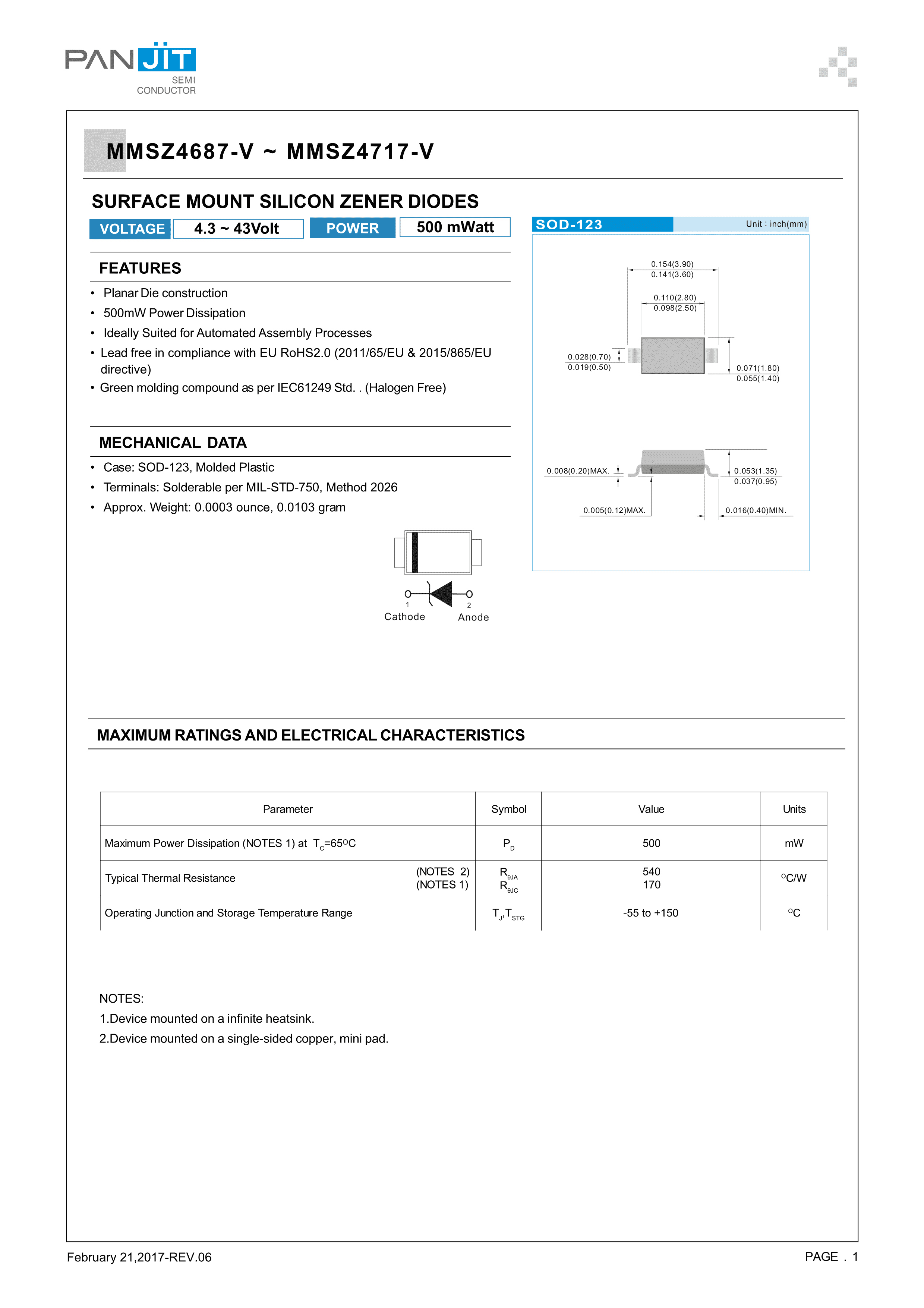 MMSZ4692-V_R1_00001数据手册SOD-123封装PANJIT(强茂)PDF规格书,中