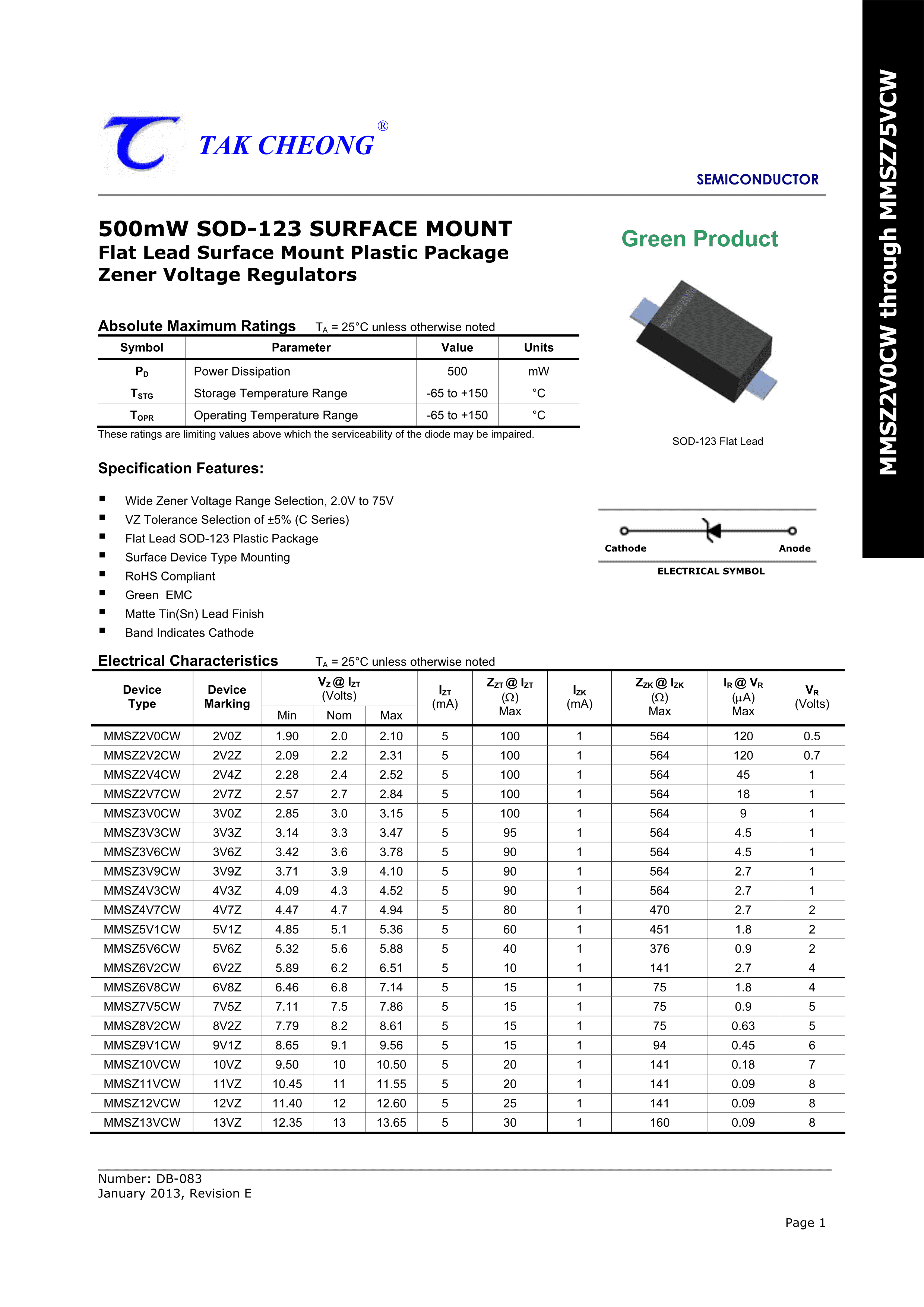 MMSZ4V7CW数据手册SOD-123封装TC(德昌)PDF规格书,中英文下载
