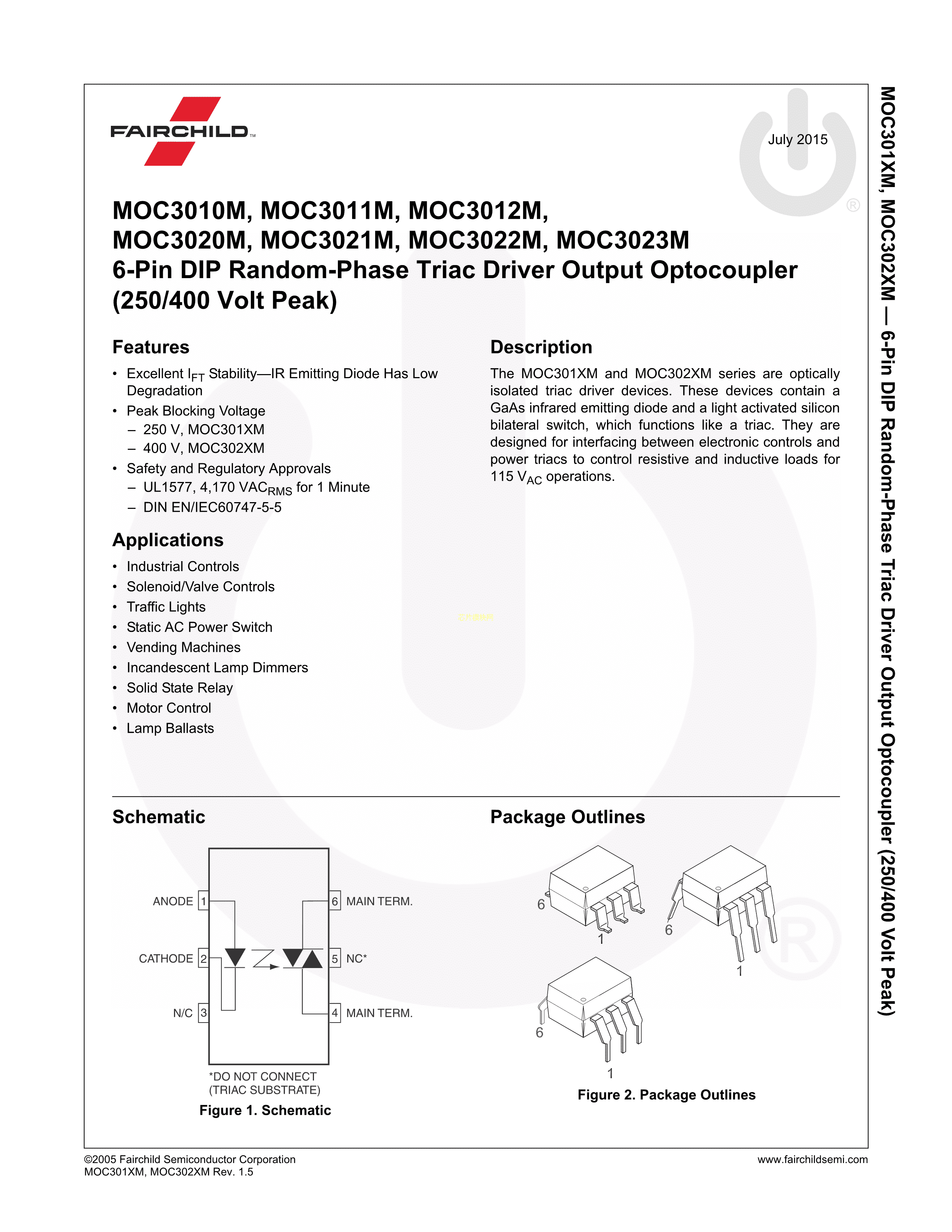 MOC3022M数据手册DIP-6封装onsemi(安森美)PDF规格书,中英文下载