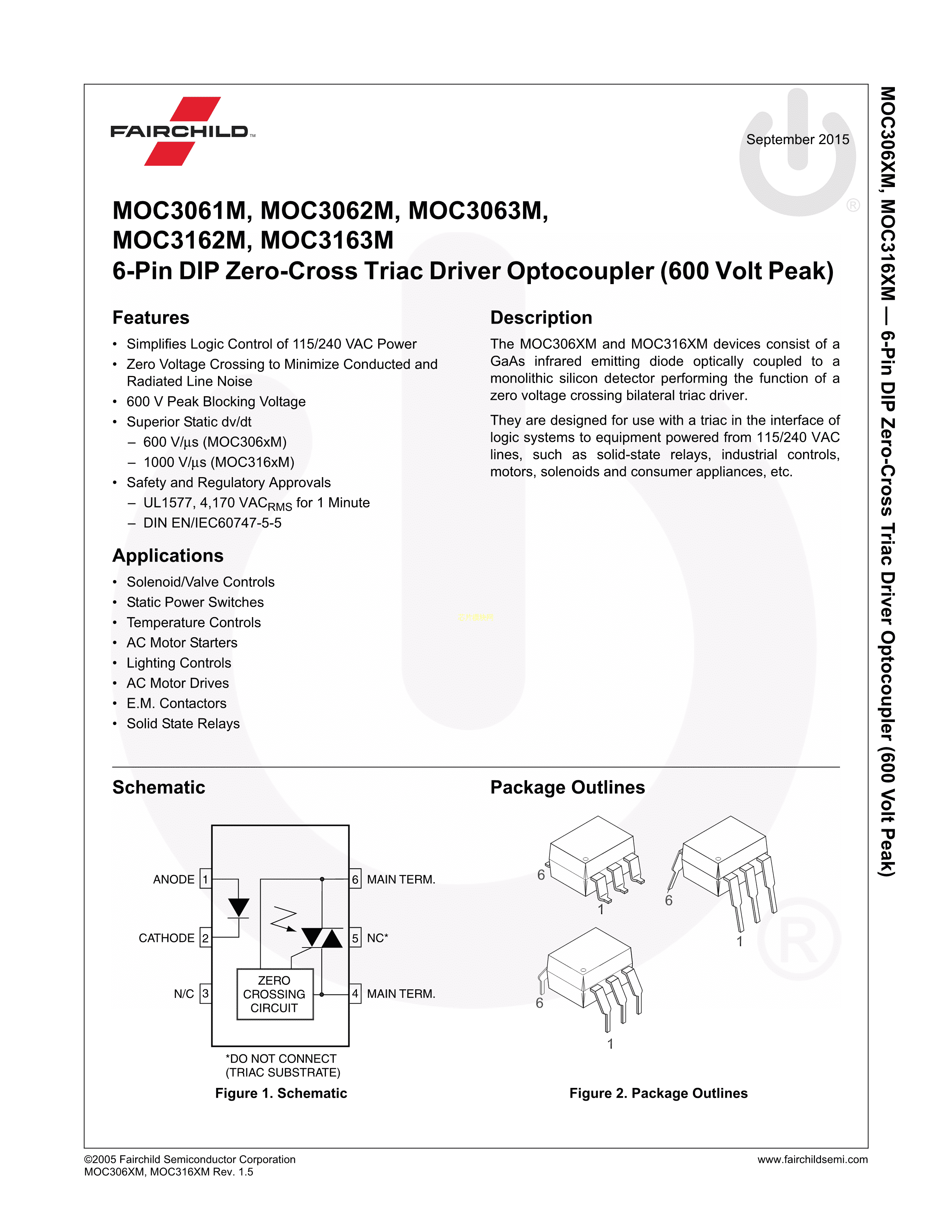 MOC3063SR2VM数据手册SMD-6封装onsemi(安森美)PDF规格书,中英文下载