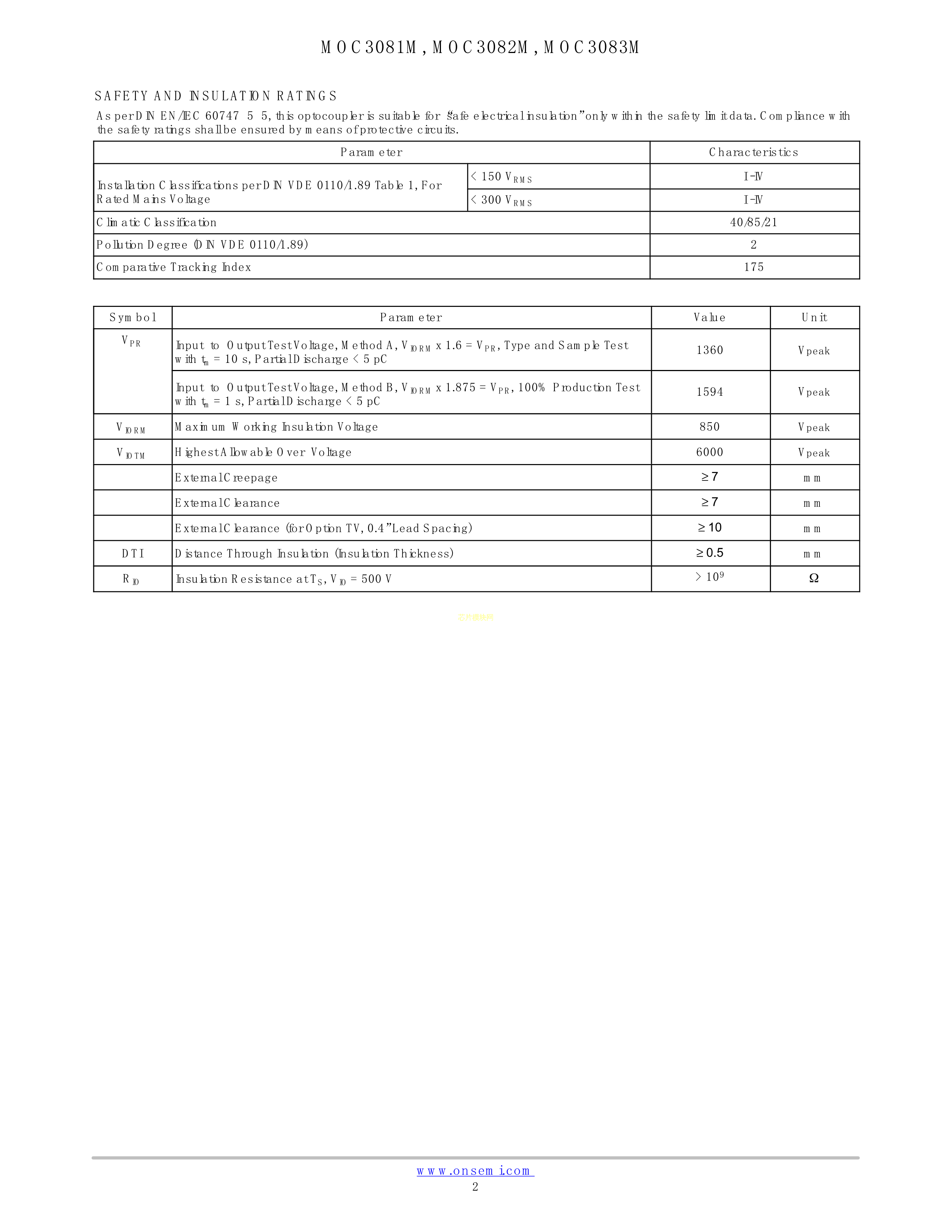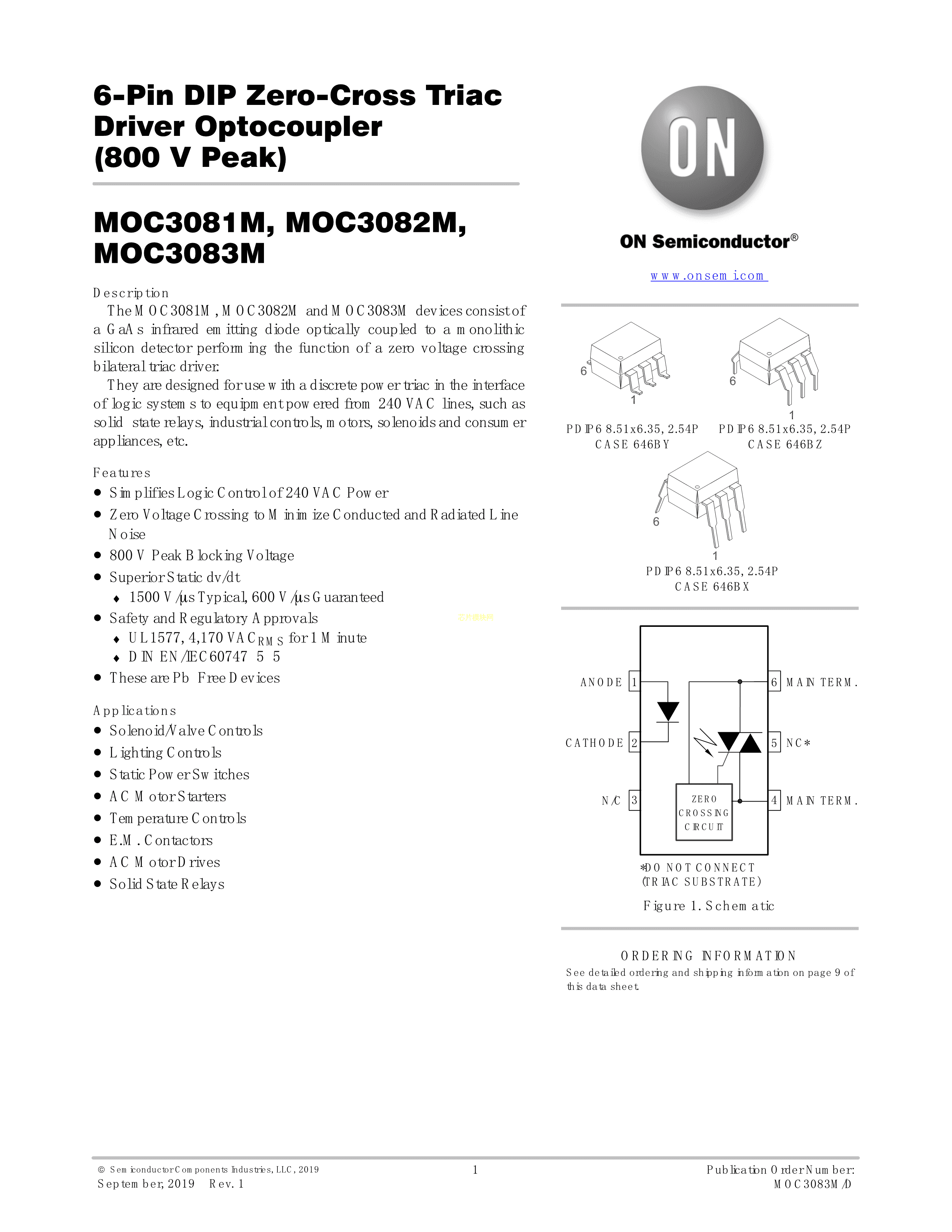 MOC3083VM数据手册DIP-6封装onsemi(安森美)PDF规格书,中英文下载