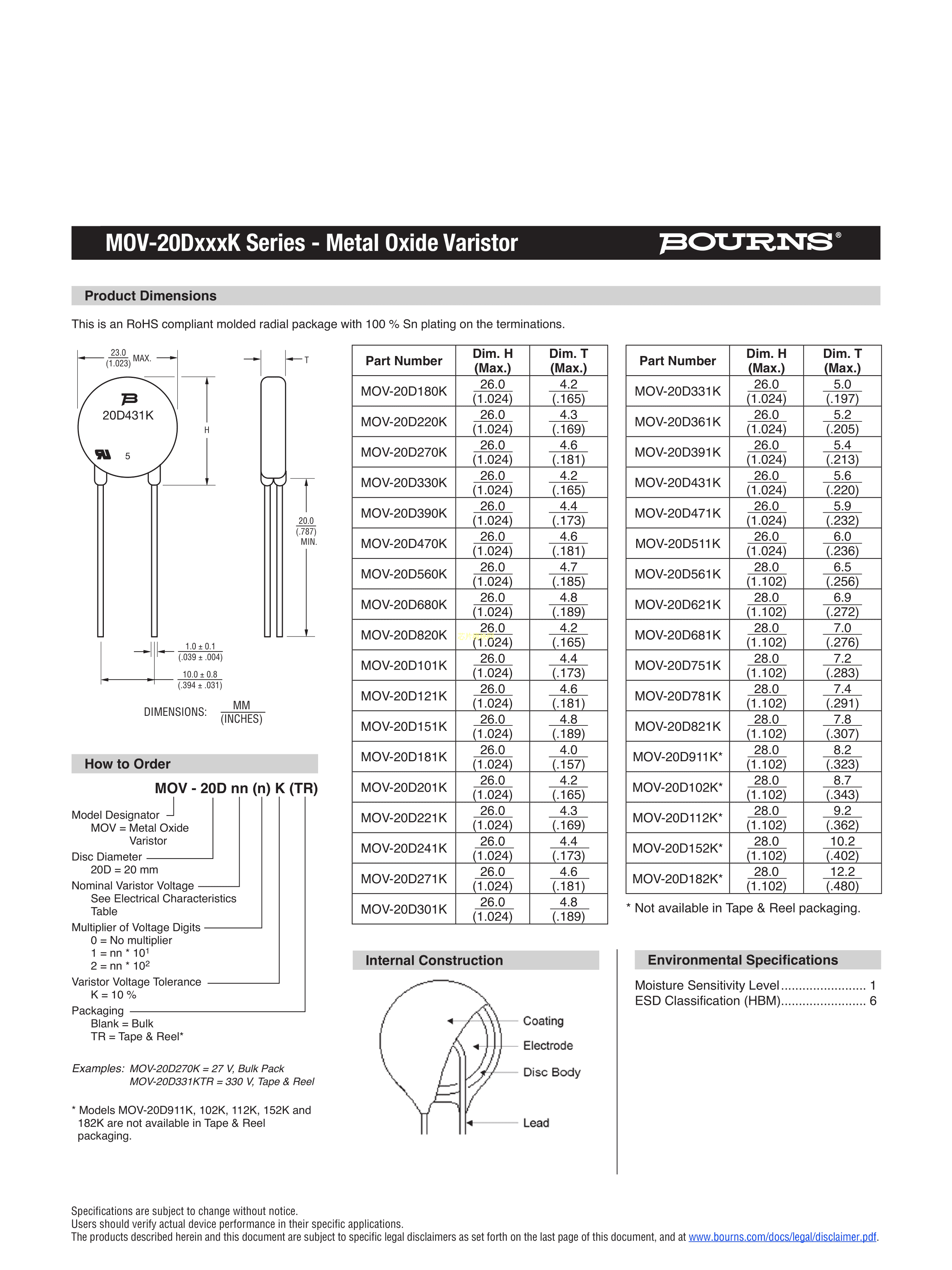 MOV-20D470KTR数据手册径向引线封装BOURNSPDF规格书,中英文下载
