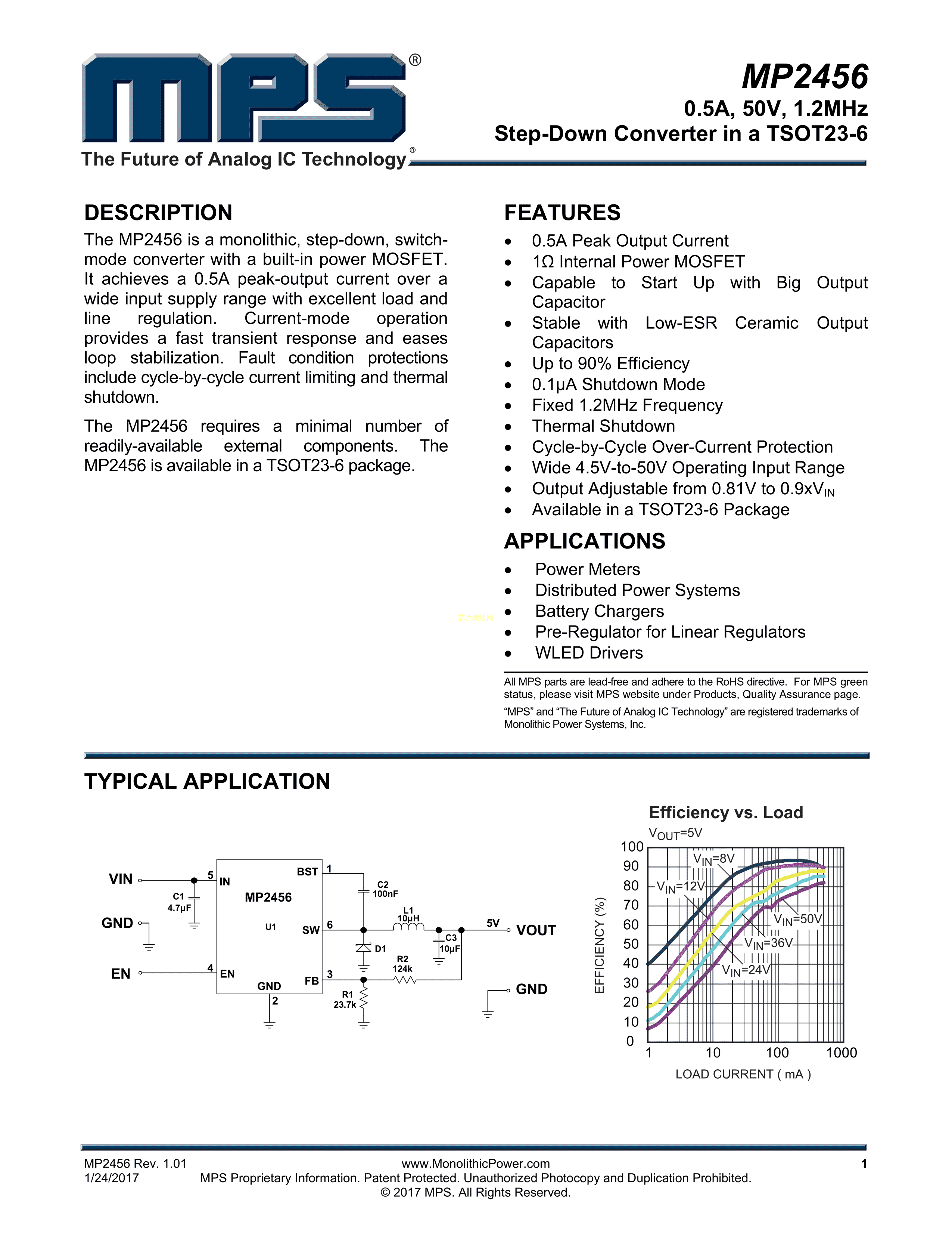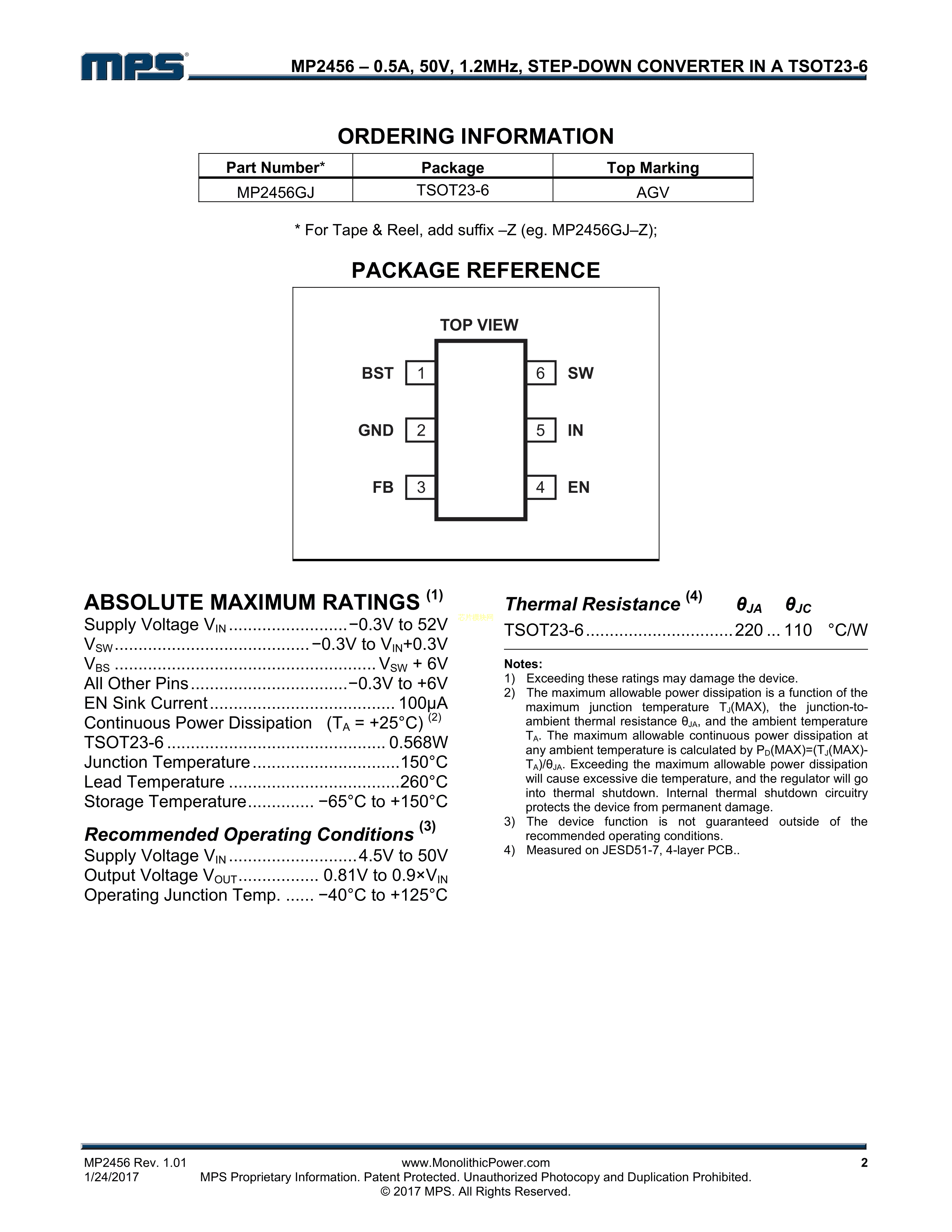 MP2456GJ-Z数据手册TSOT-23-6封装MPSPDF规格书,中英文下载