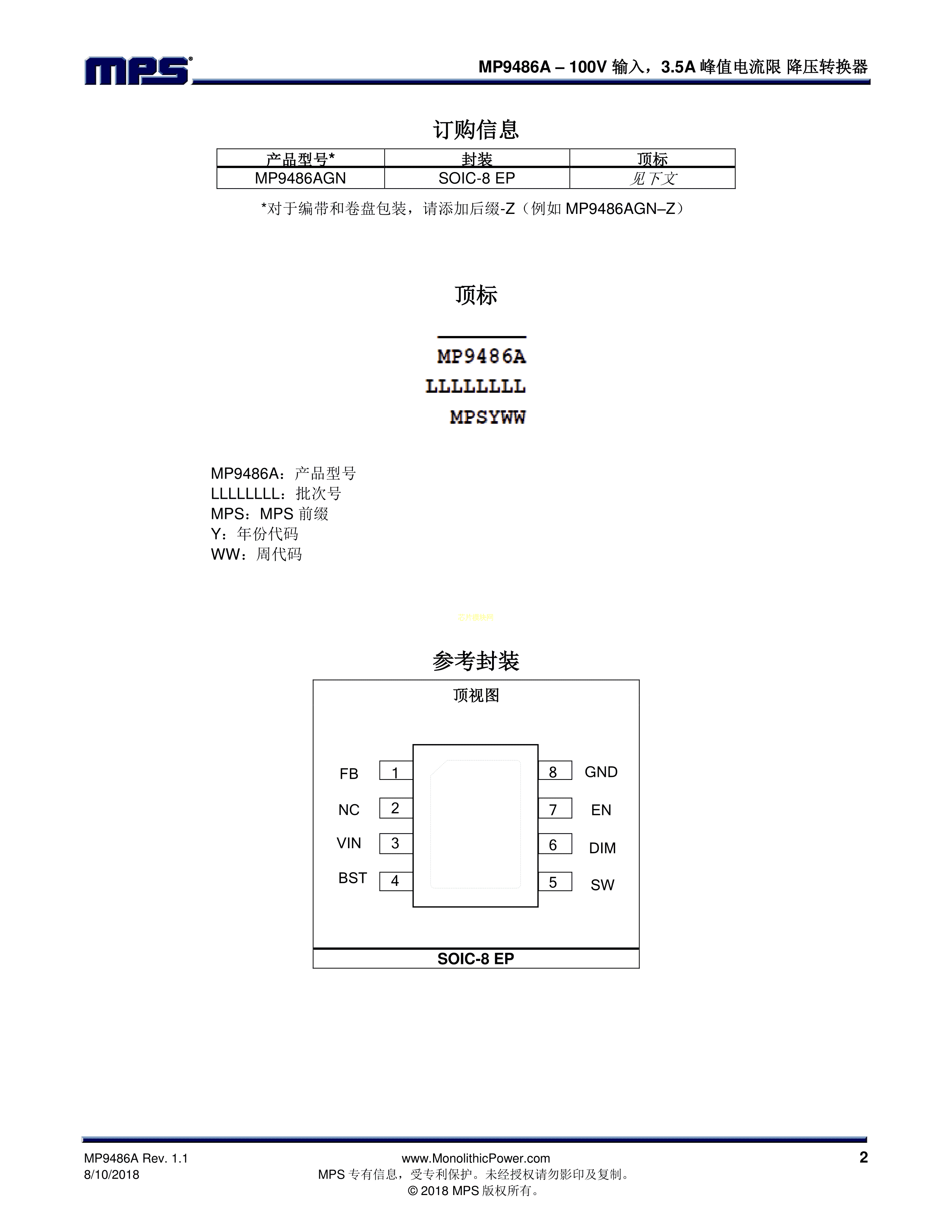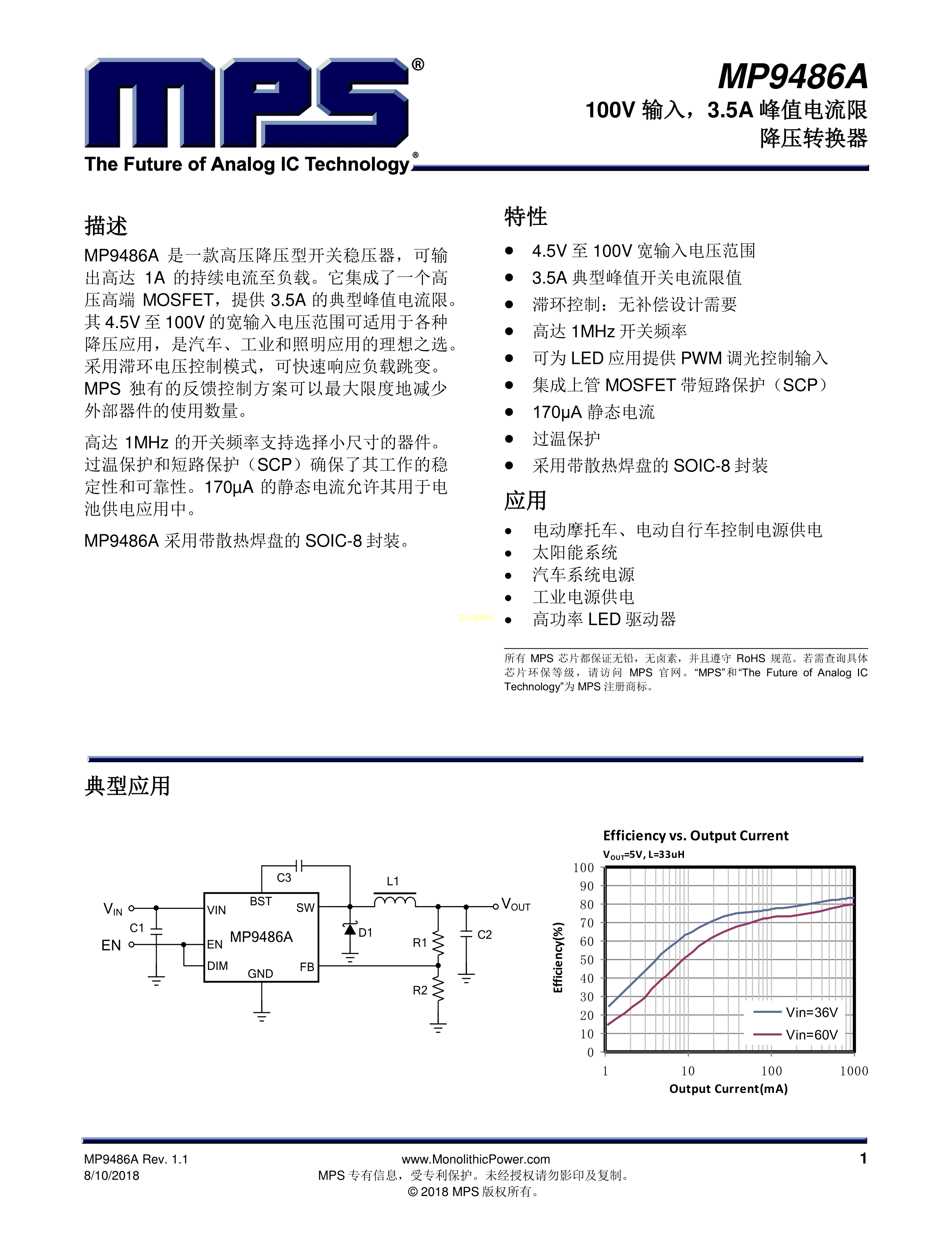 MP9486AGN-Z数据手册SOIC-8封装MPSPDF规格书,中英文下载