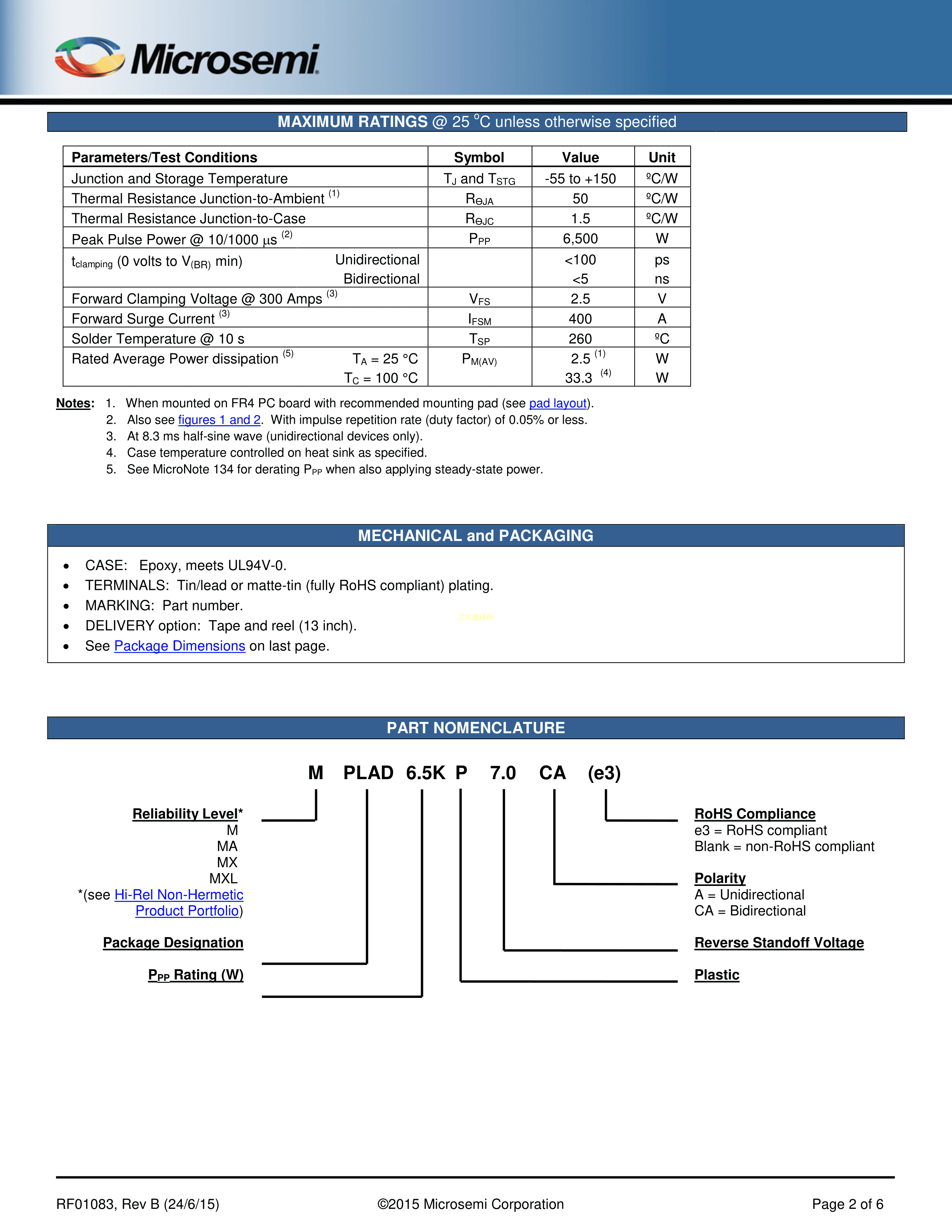 MPLAD6.5KP10CA-TR数据手册Mini-PLAD封装Microsemi(美高森美)PDF