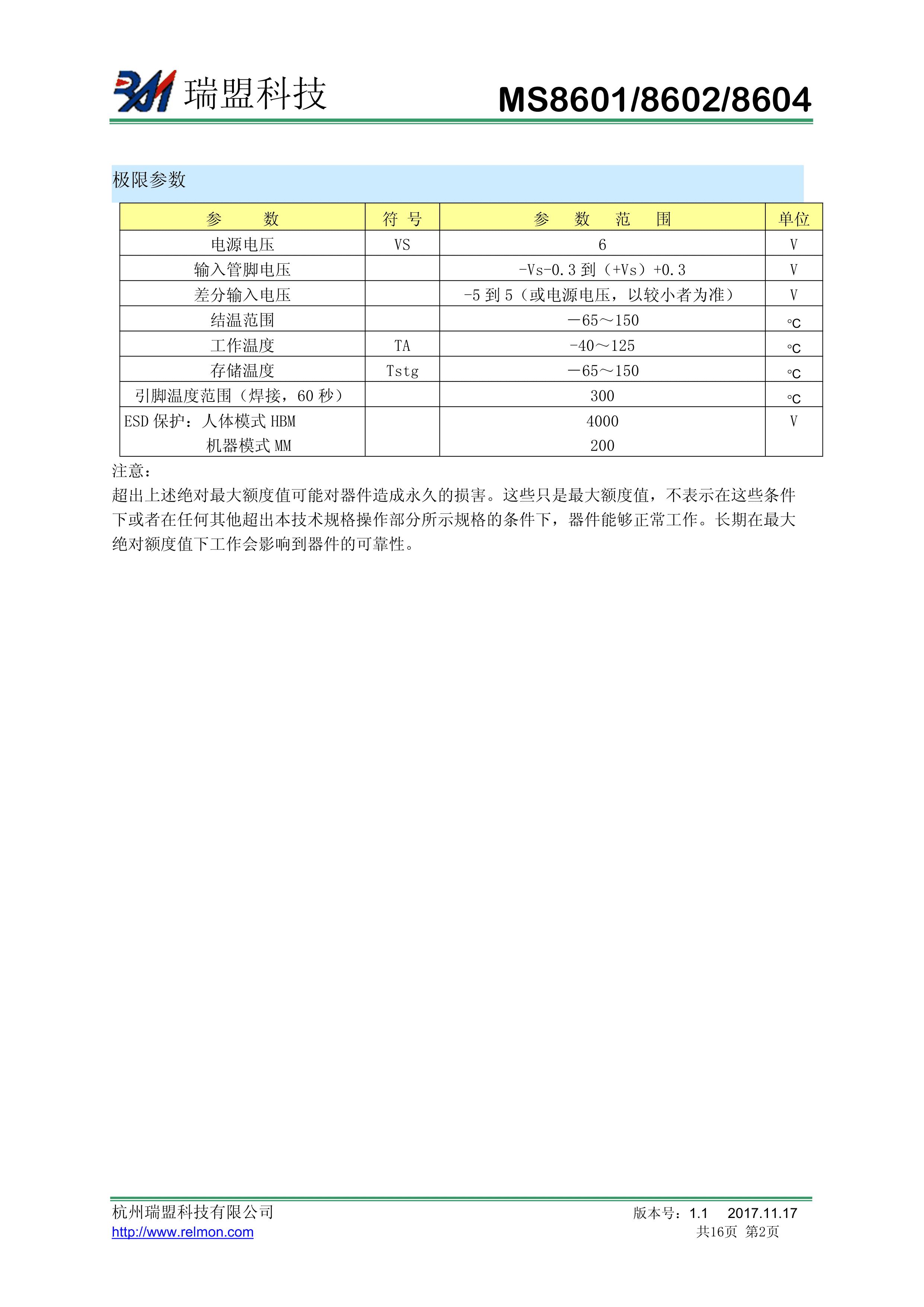 MS8602数据手册MSOP-8封装杭州瑞盟.pdf