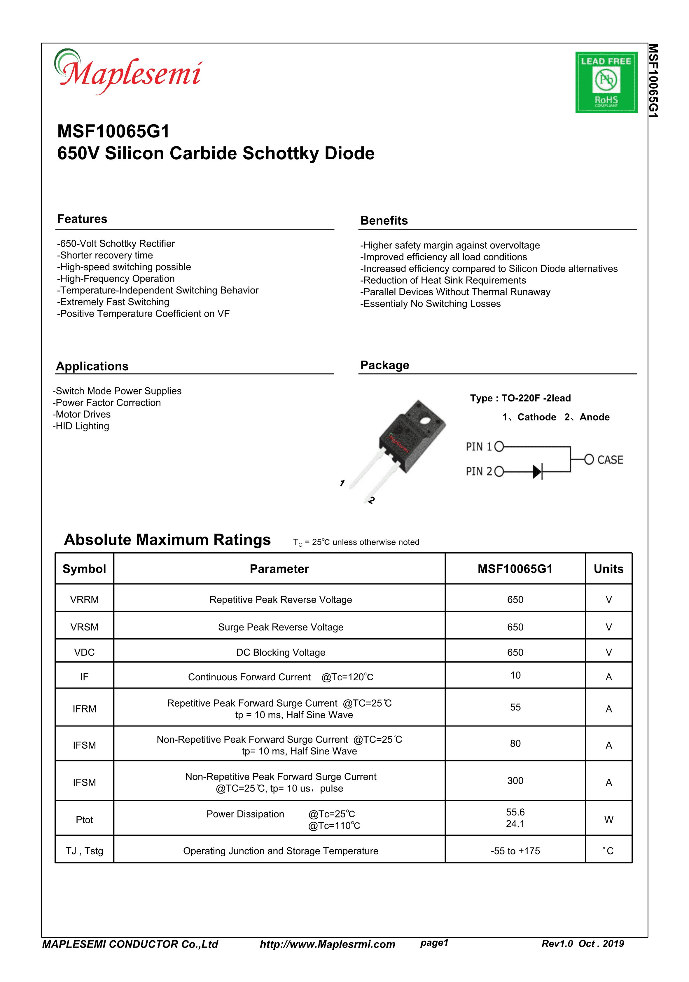 MSF10065G1数据手册TO-220F-2封装Maplesemi(美浦森)PDF规格书,中英文下