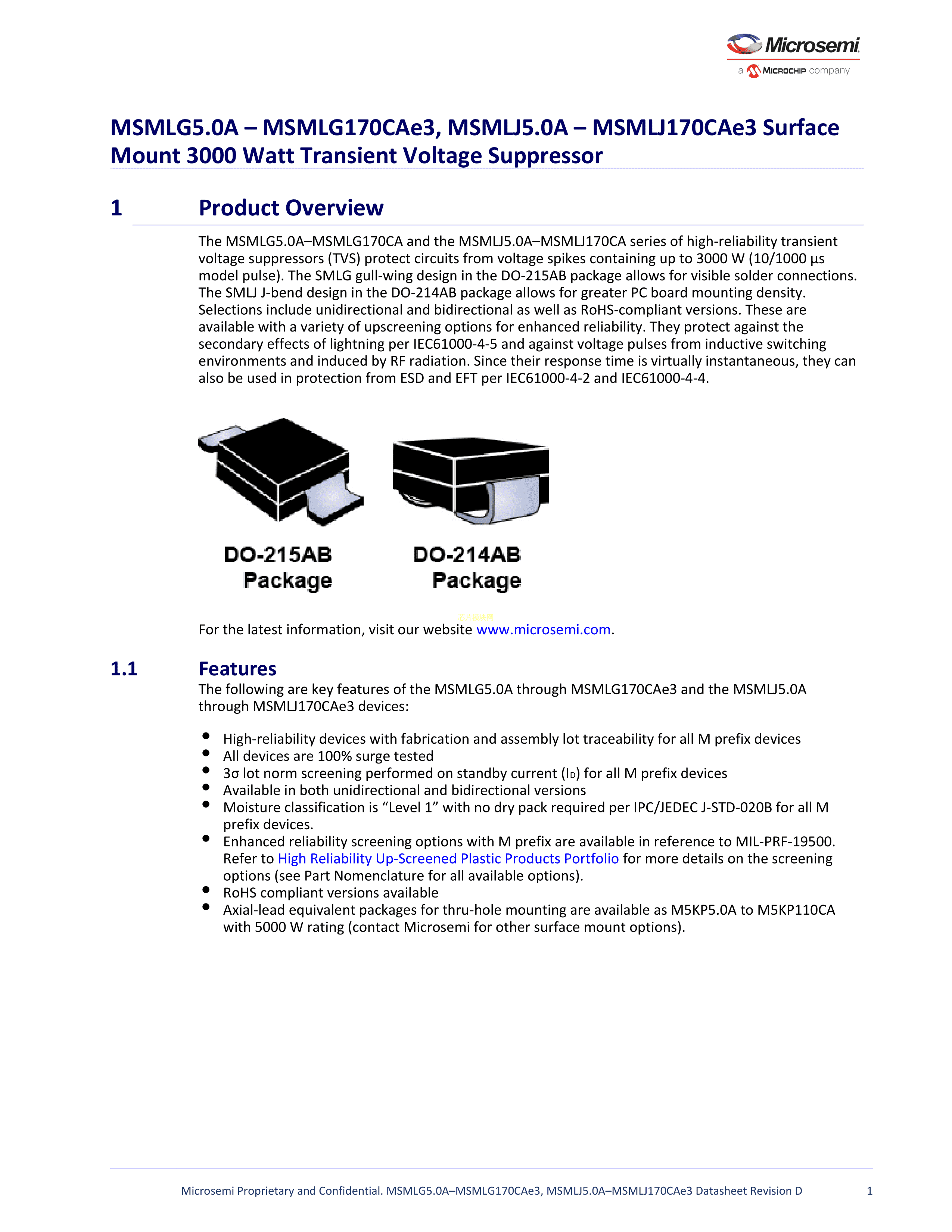 MSMLJ17CAE3数据手册DO-214AB封装Microsemi(美高森美)PDF规格书,中英文
