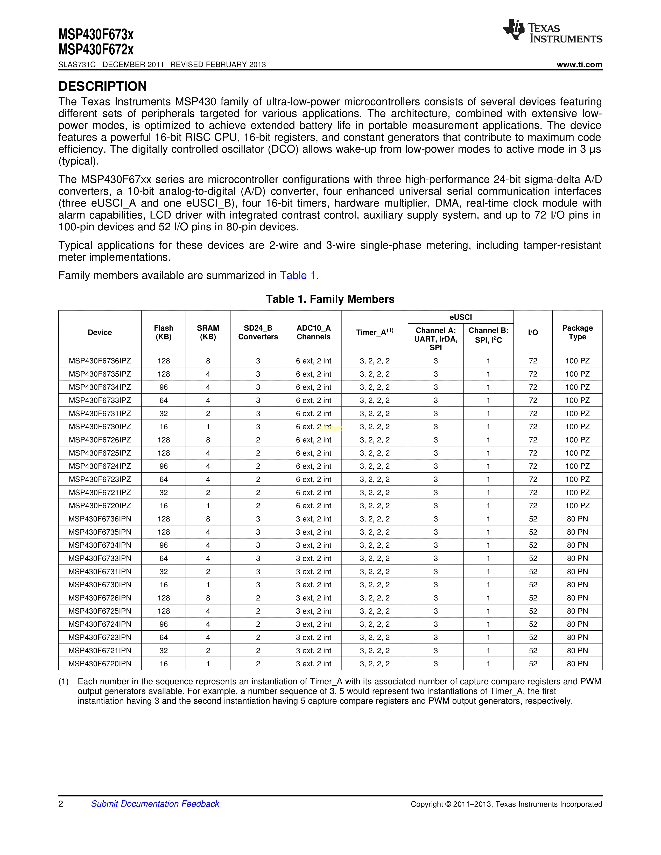 MSP430F6724IPN数据手册LQFP-80(12x12)封装TI(德州仪器)PDF规格书,中