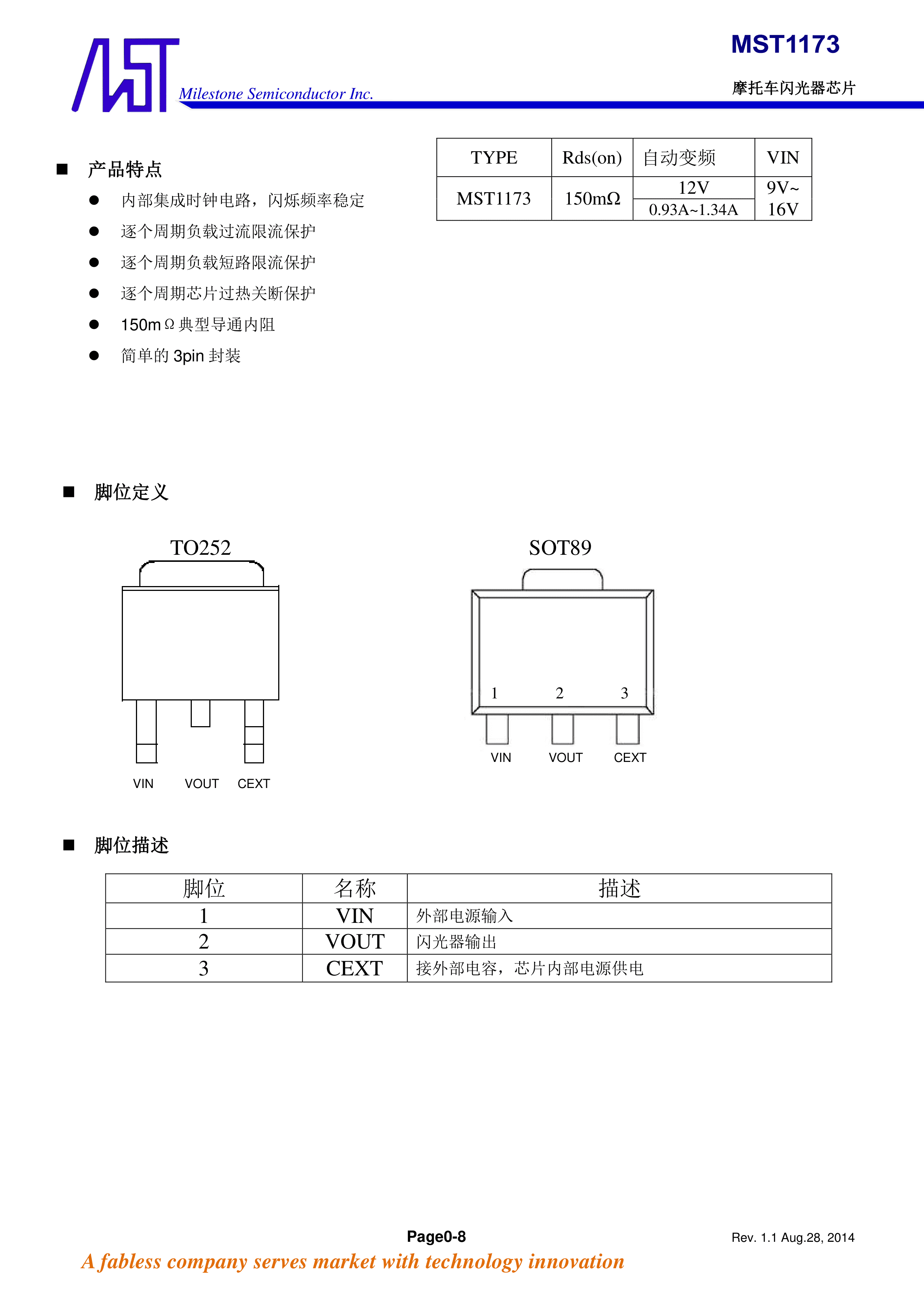 MST1173TQ数据手册TO-252封装MST(迈尔斯通)PDF规格书,中英文下载
