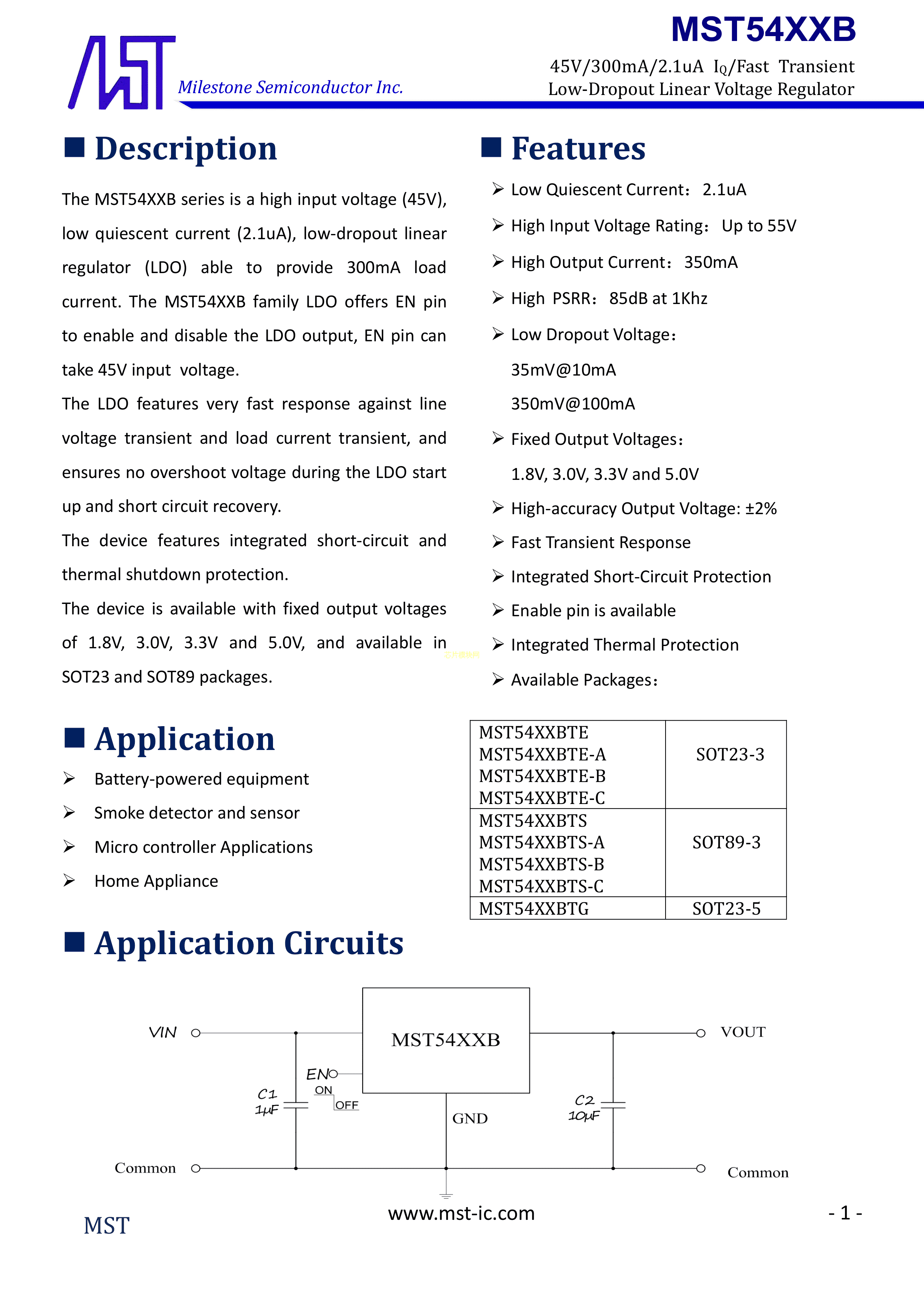 MST5433BTE数据手册SOT-23-3封装MST(迈尔斯通)PDF规格书,中英文下载