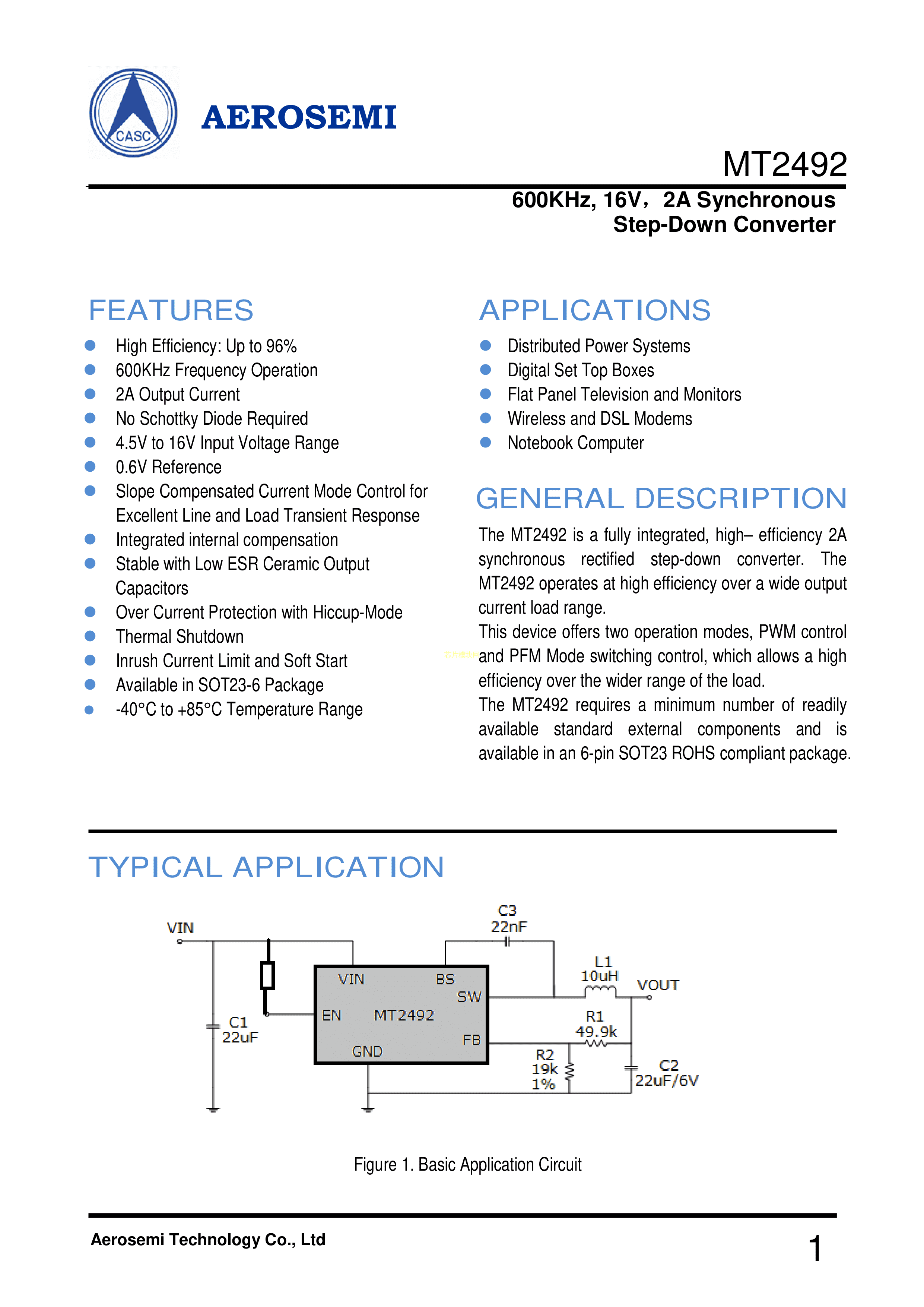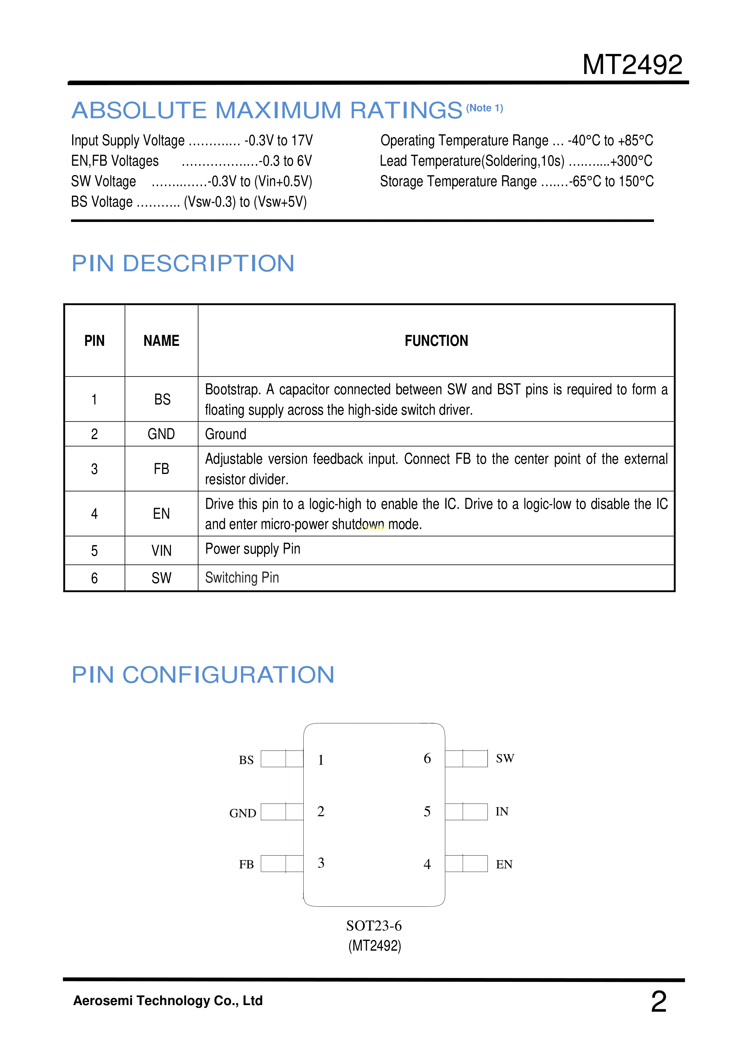 MT2492数据手册SOT-23-6封装西安航天民芯PDF规格书,中英文下载