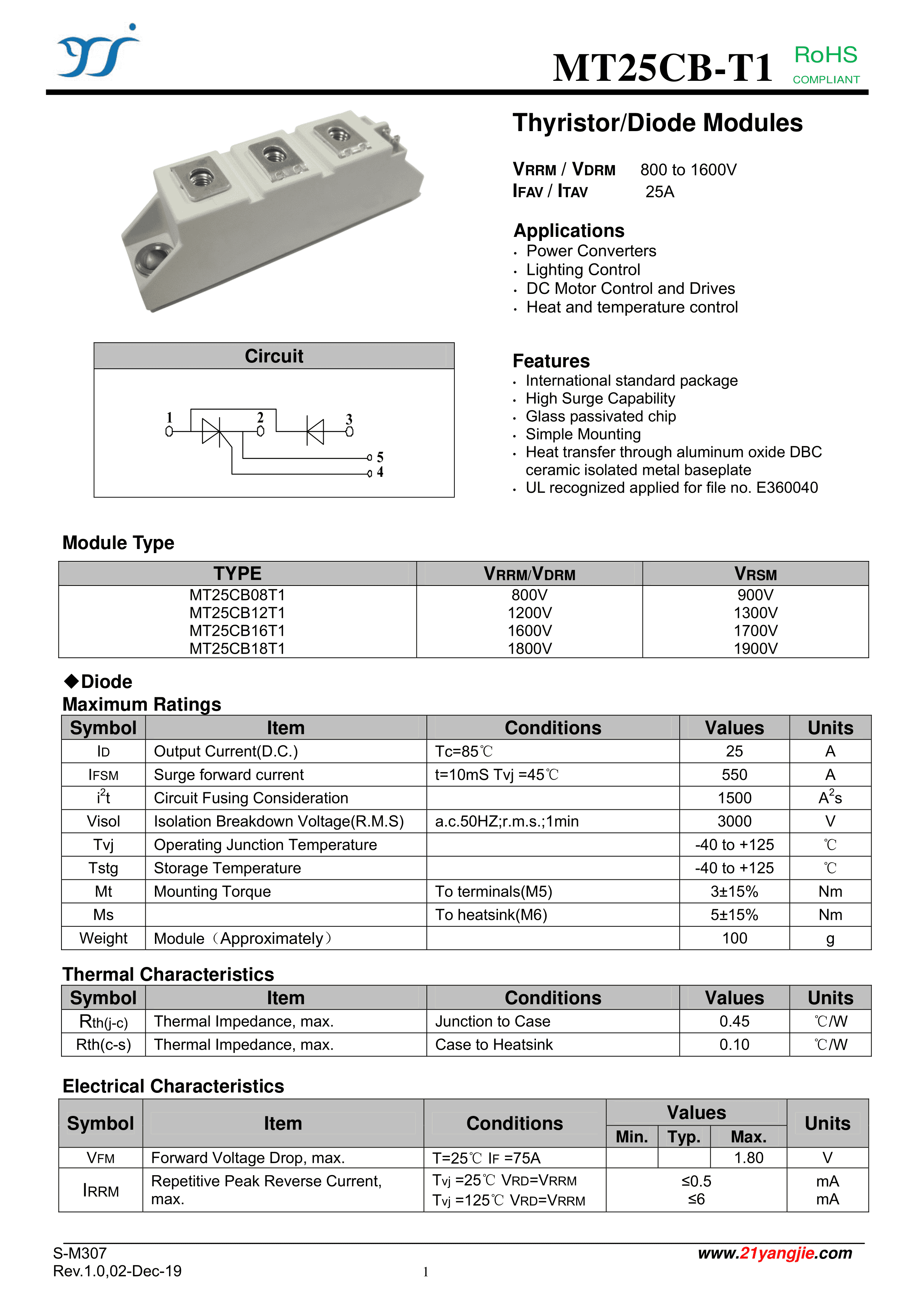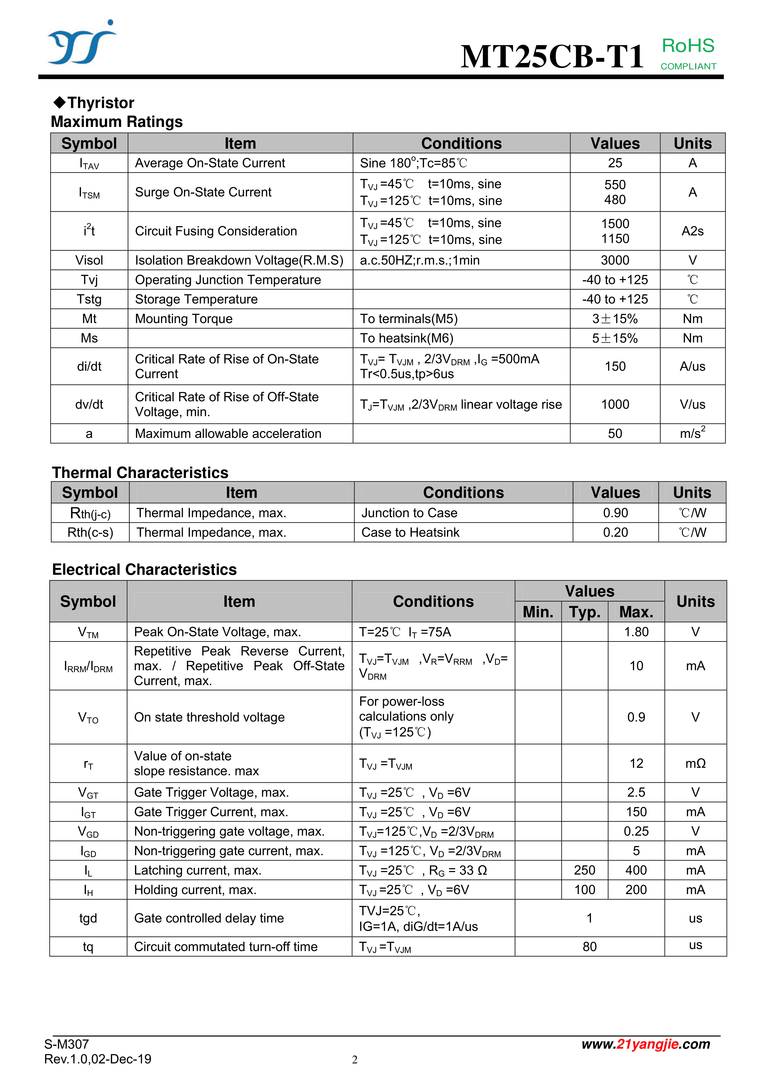 MT25CB16T1数据手册T1封装YANGJIE(扬杰)PDF规格书,中英文下载