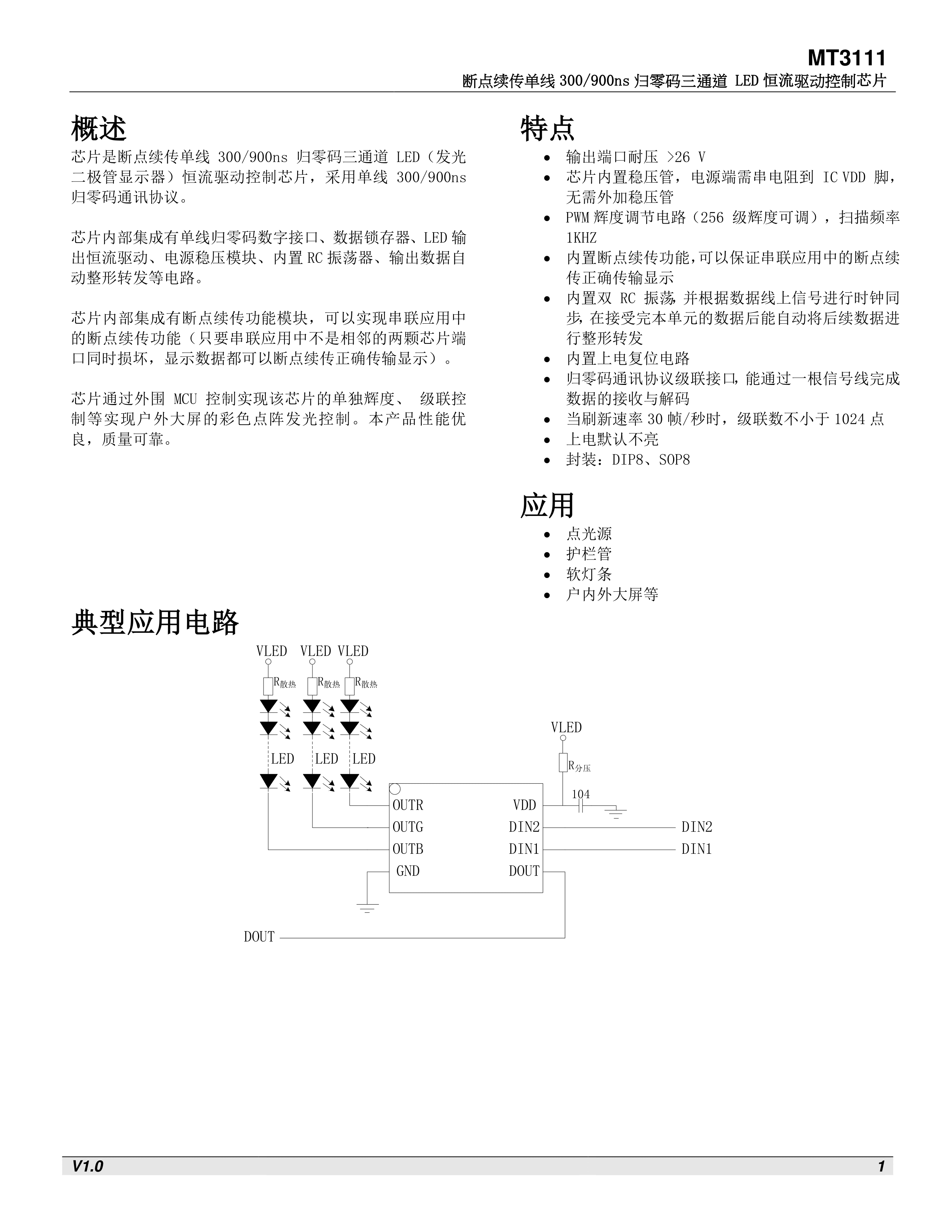 MT3111数据手册SOP-8封装TPOWER(天源)PDF规格书,中英文下载