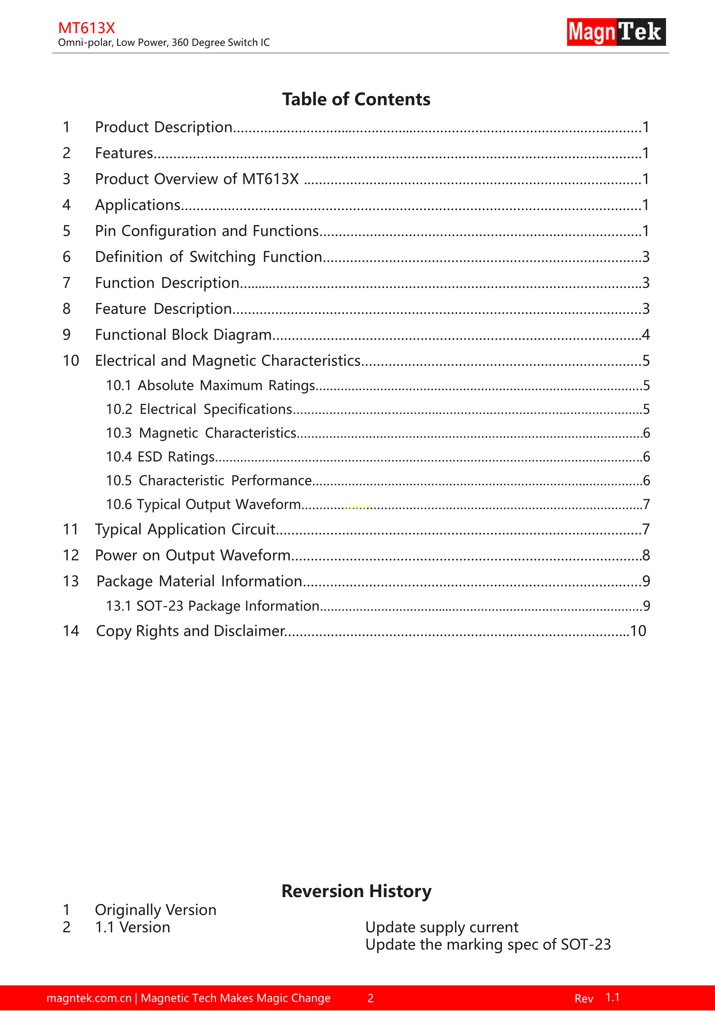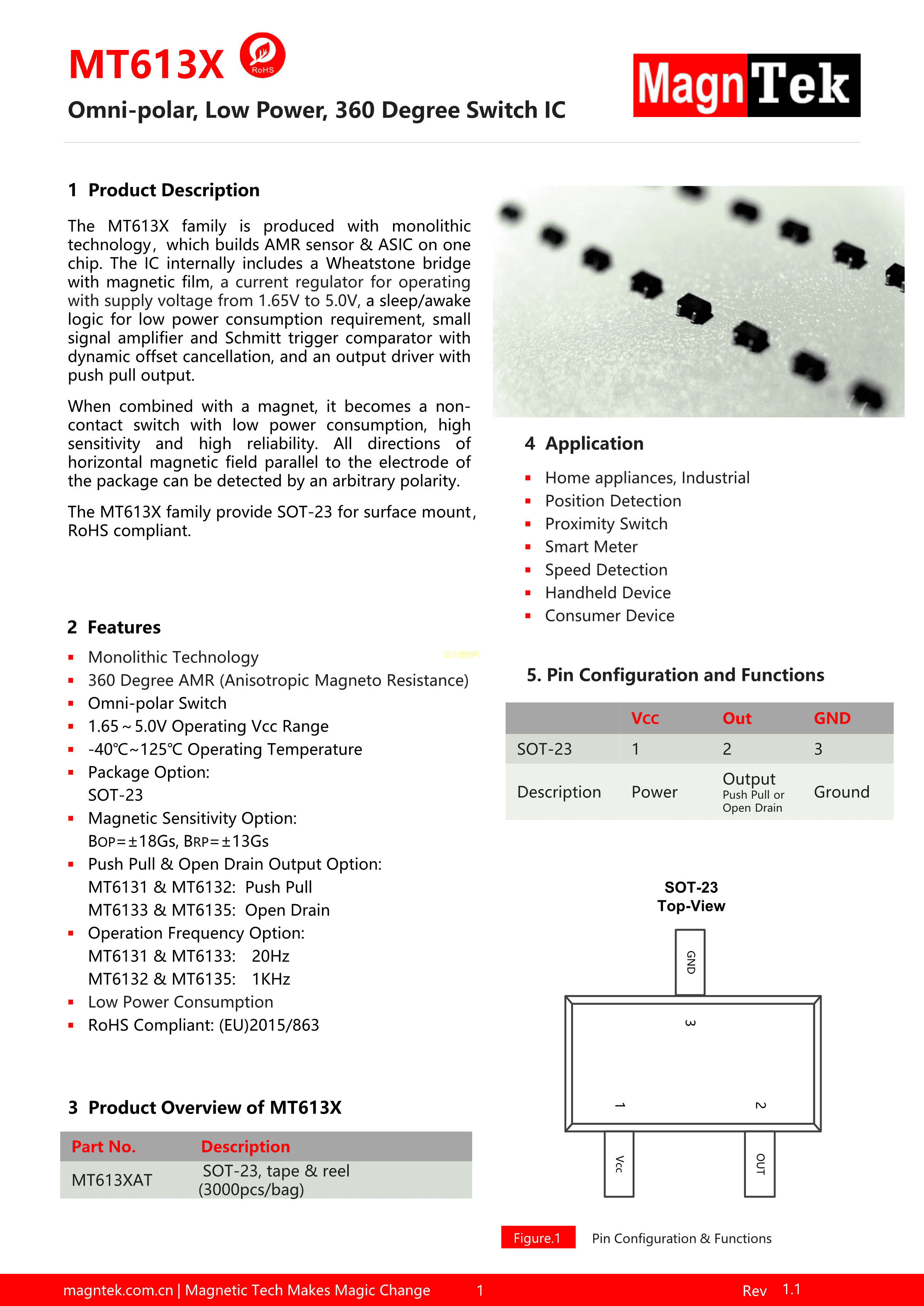 MT6132AT数据手册SOT-23封装MagnTek(麦歌恩)PDF规格书,中英文下载
