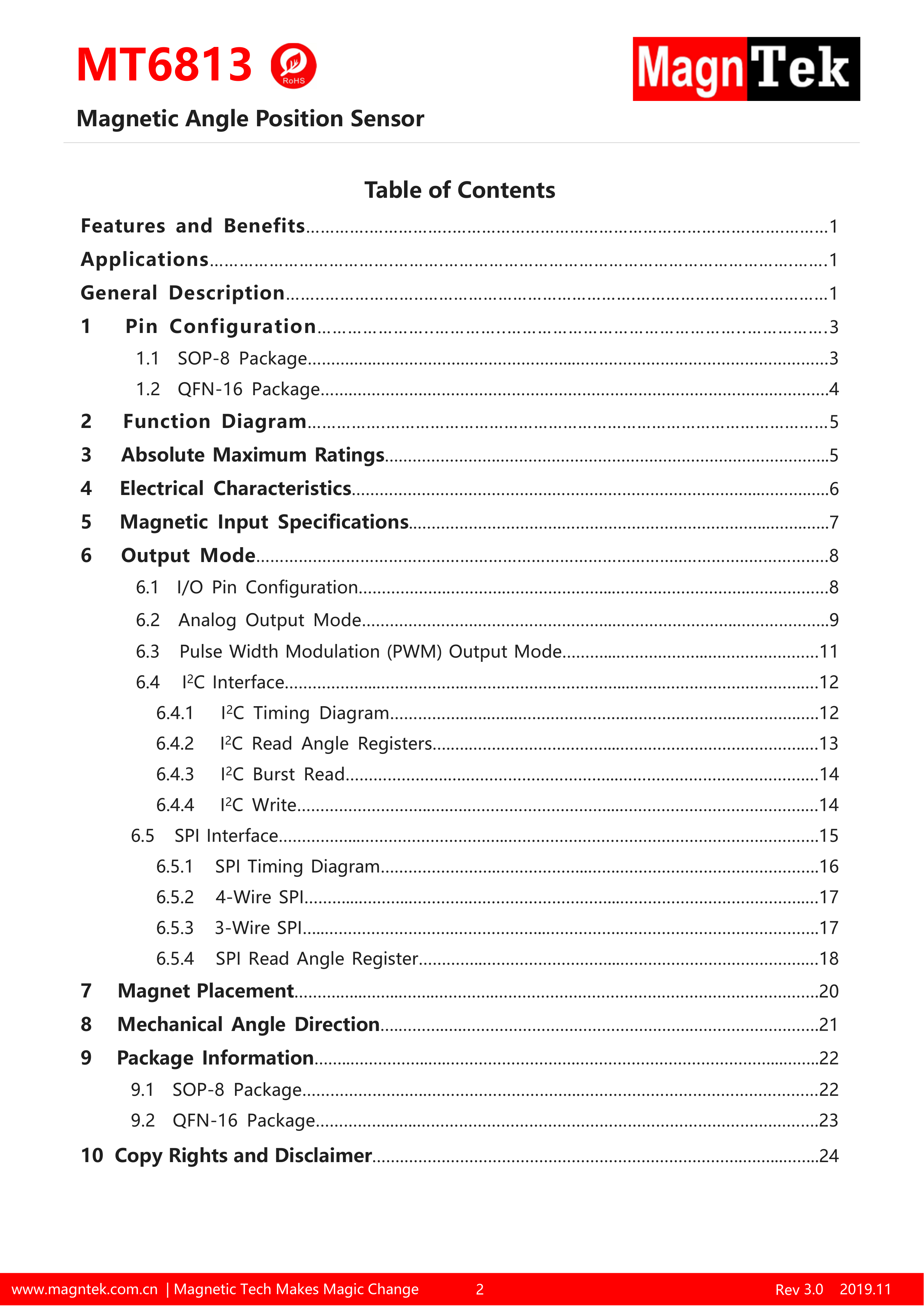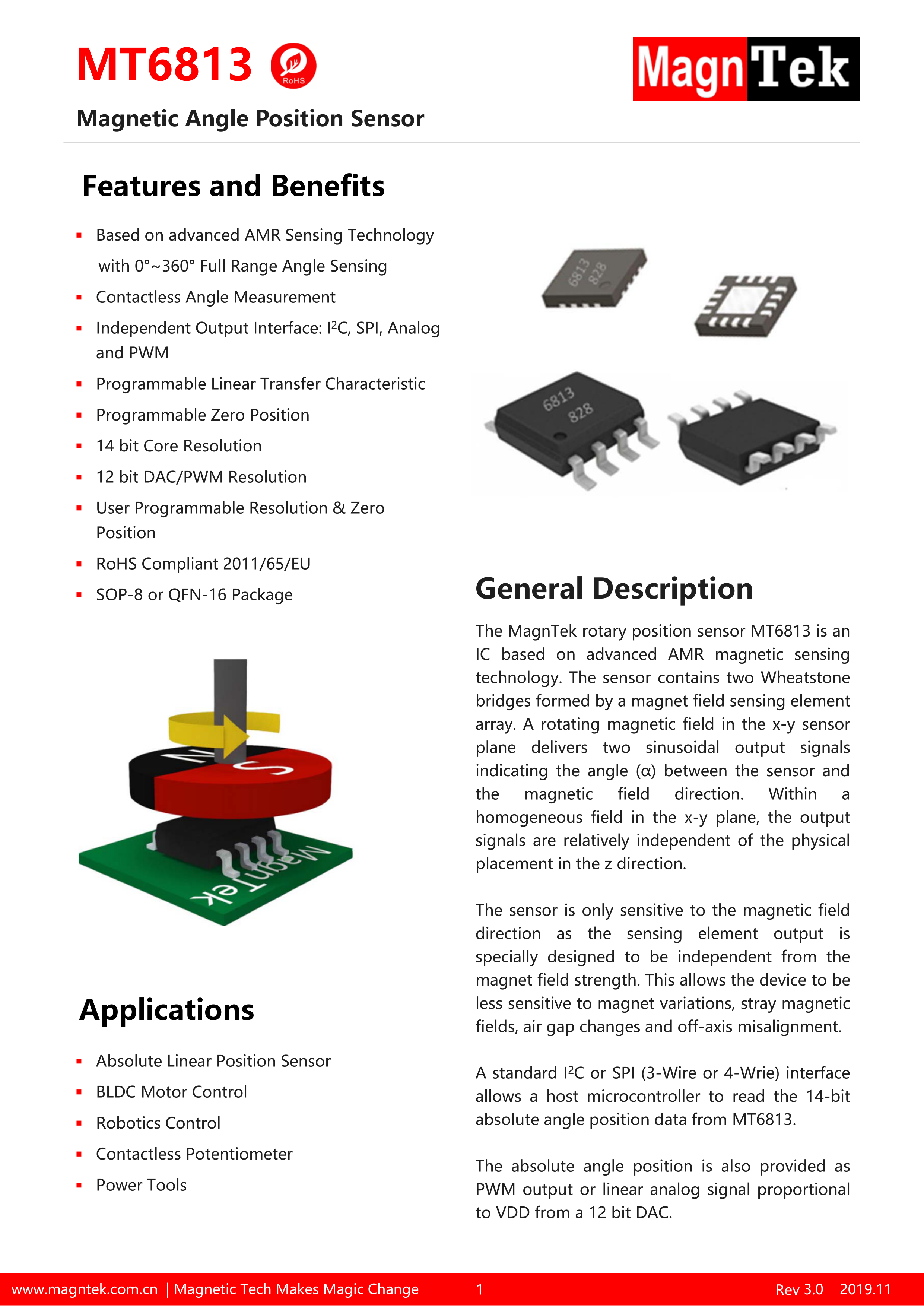 MT6813CT-LAC数据手册SOP-8封装MagnTek(麦歌恩)PDF规格书,中英文下载