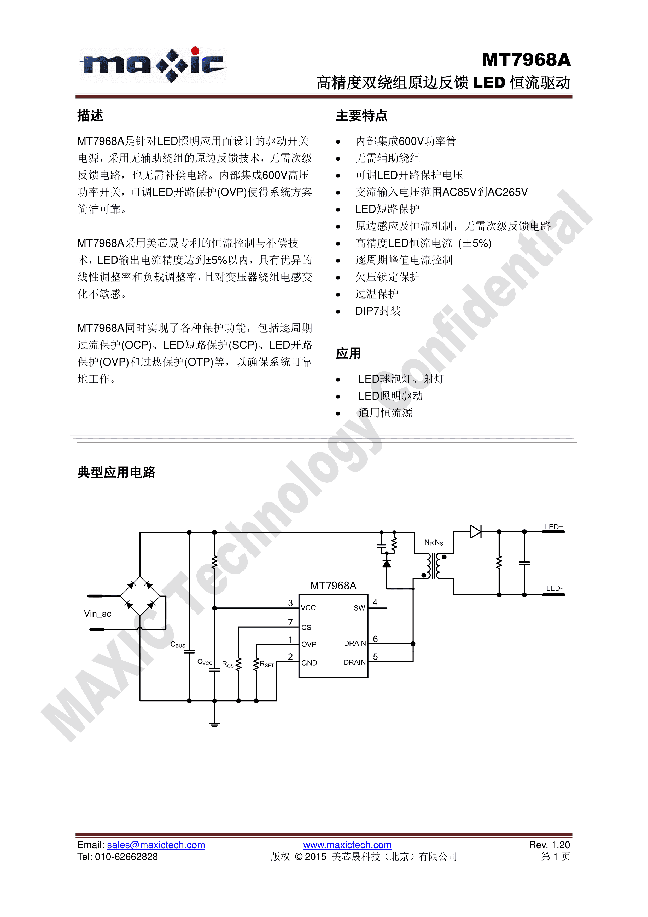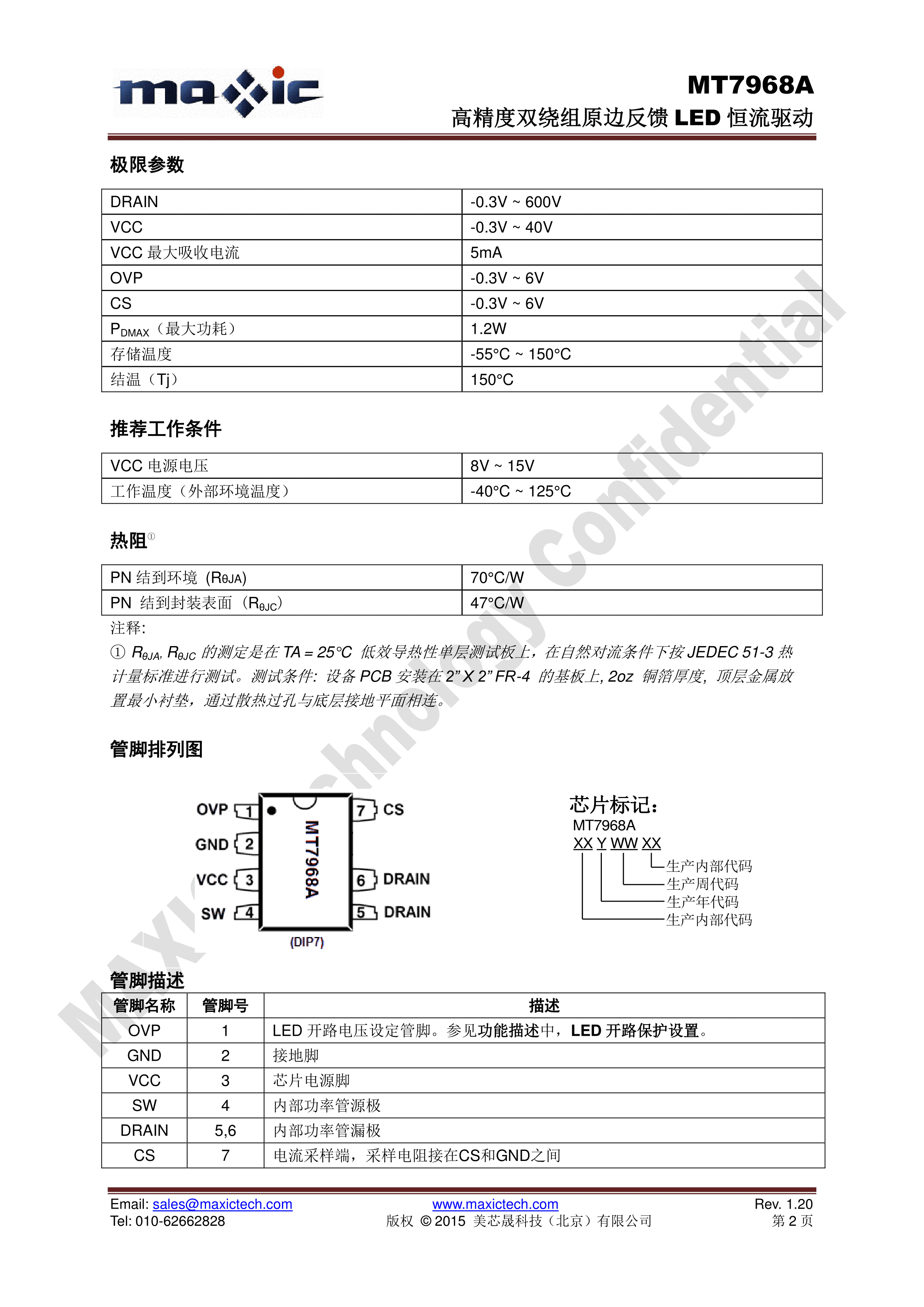 MT7968A数据手册DIP-7封装MAXIC(美芯晟)PDF规格书,中英文下载