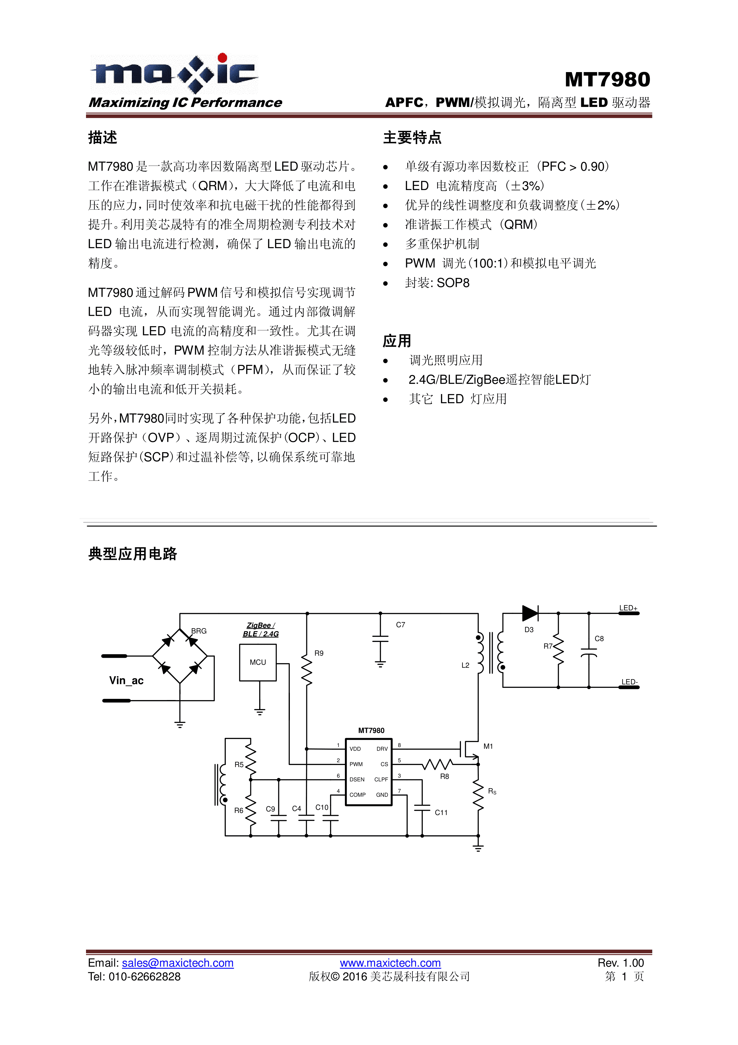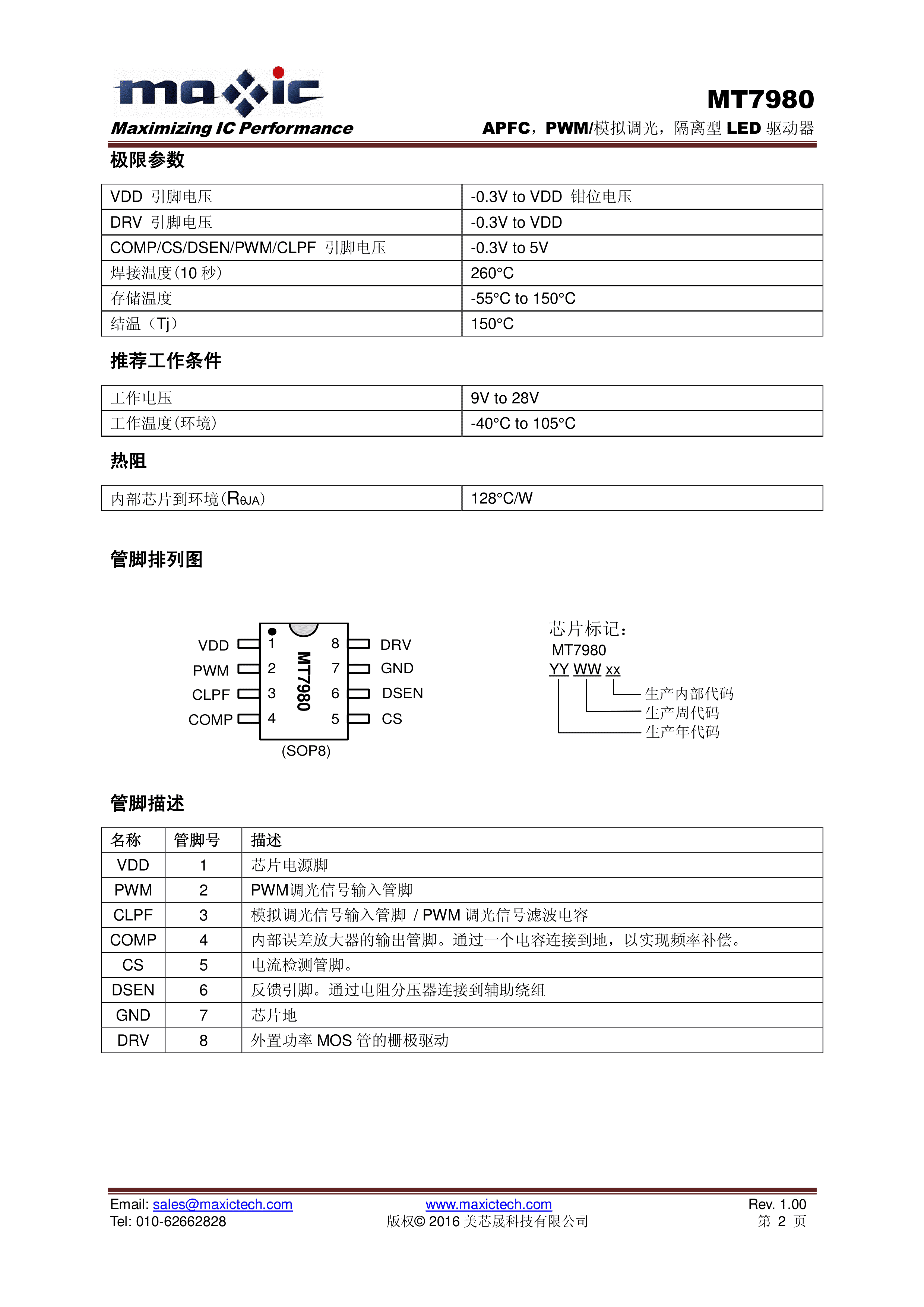 MT7980数据手册SOP-8封装MAXIC(美芯晟)PDF规格书,中英文下载