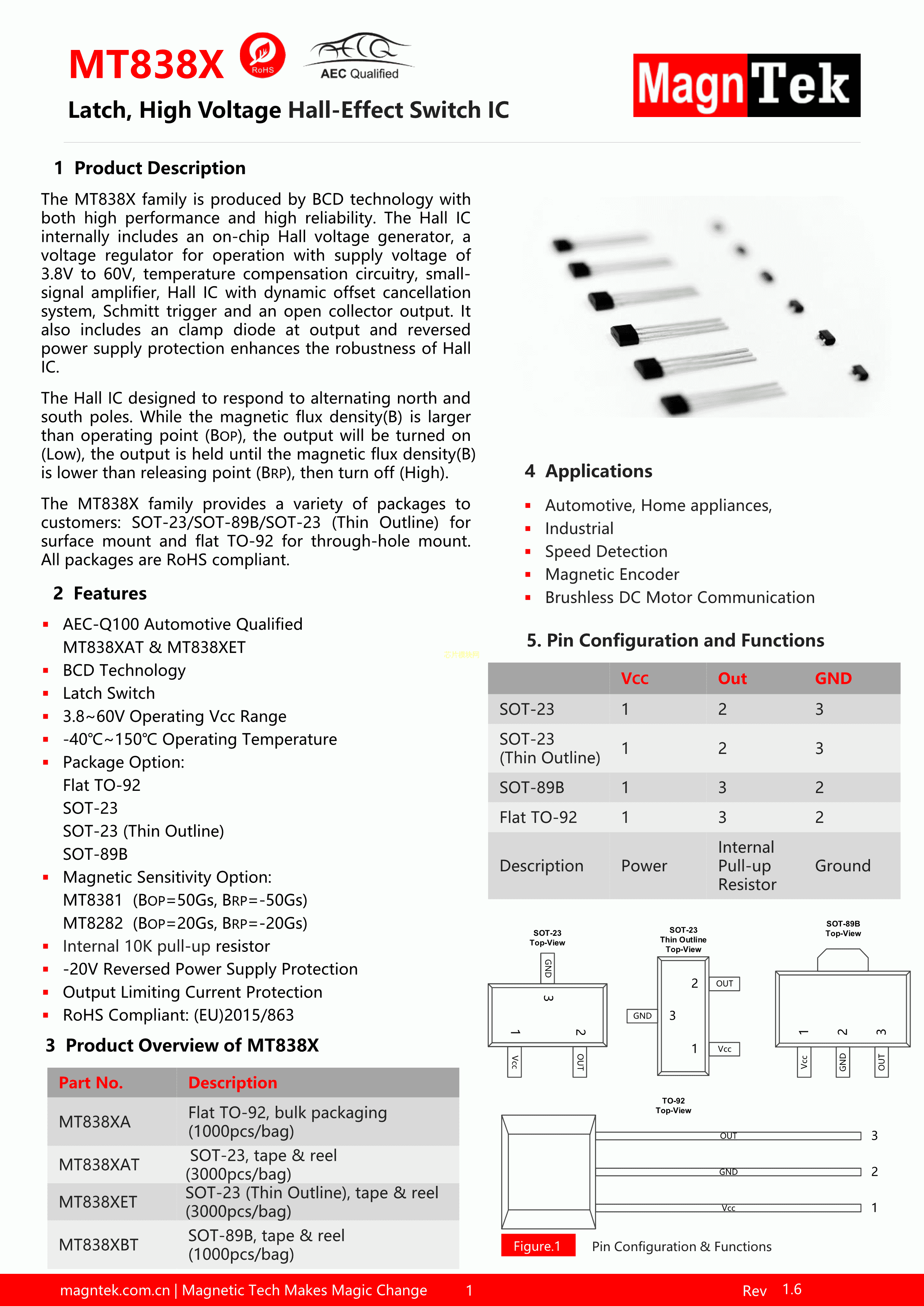 MT8381AT数据手册SOT-23封装MagnTek(麦歌恩)PDF规格书,中英文下载