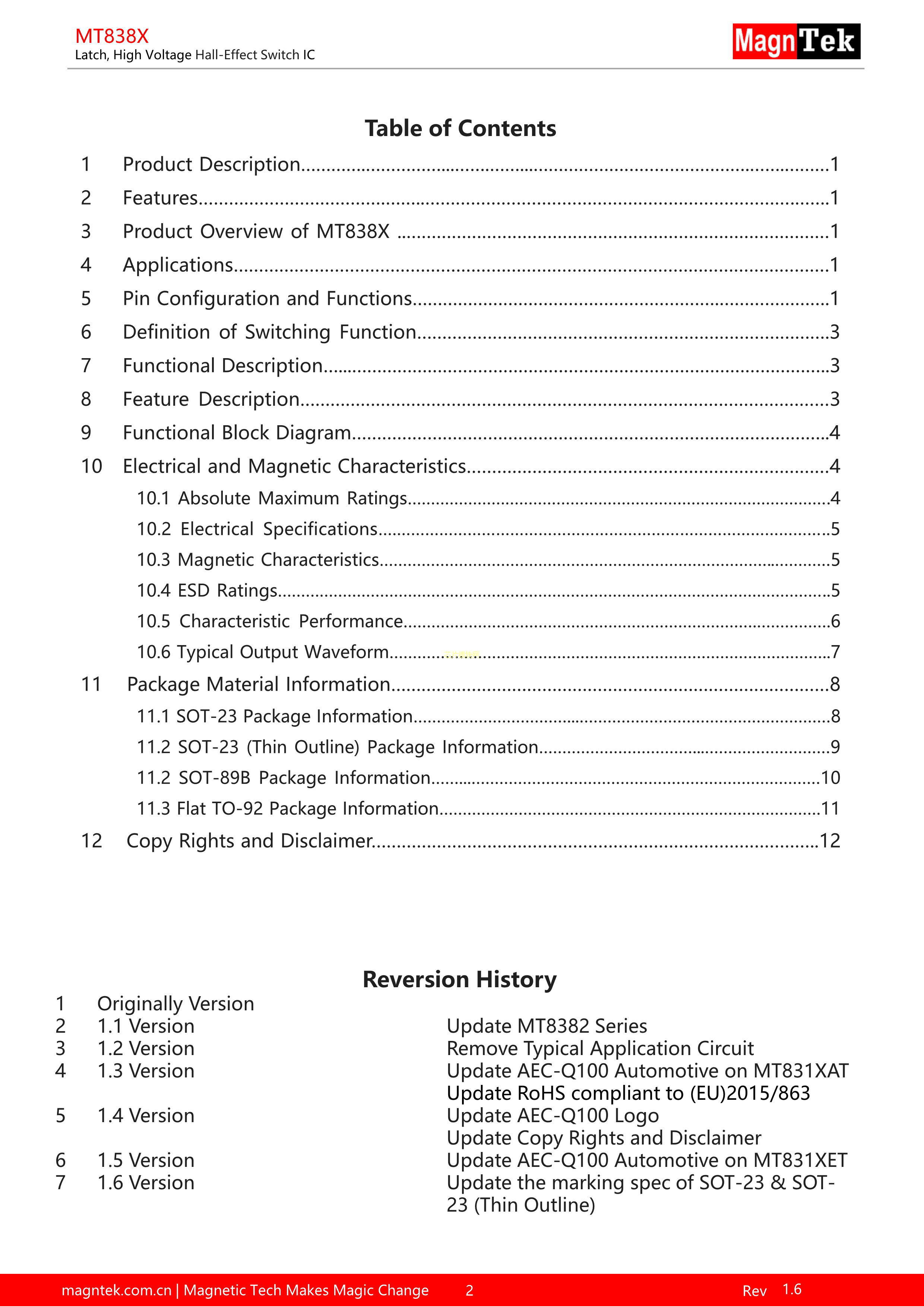 MT8382A数据手册TO-92F封装MagnTek(麦歌恩)PDF规格书,中英文下载