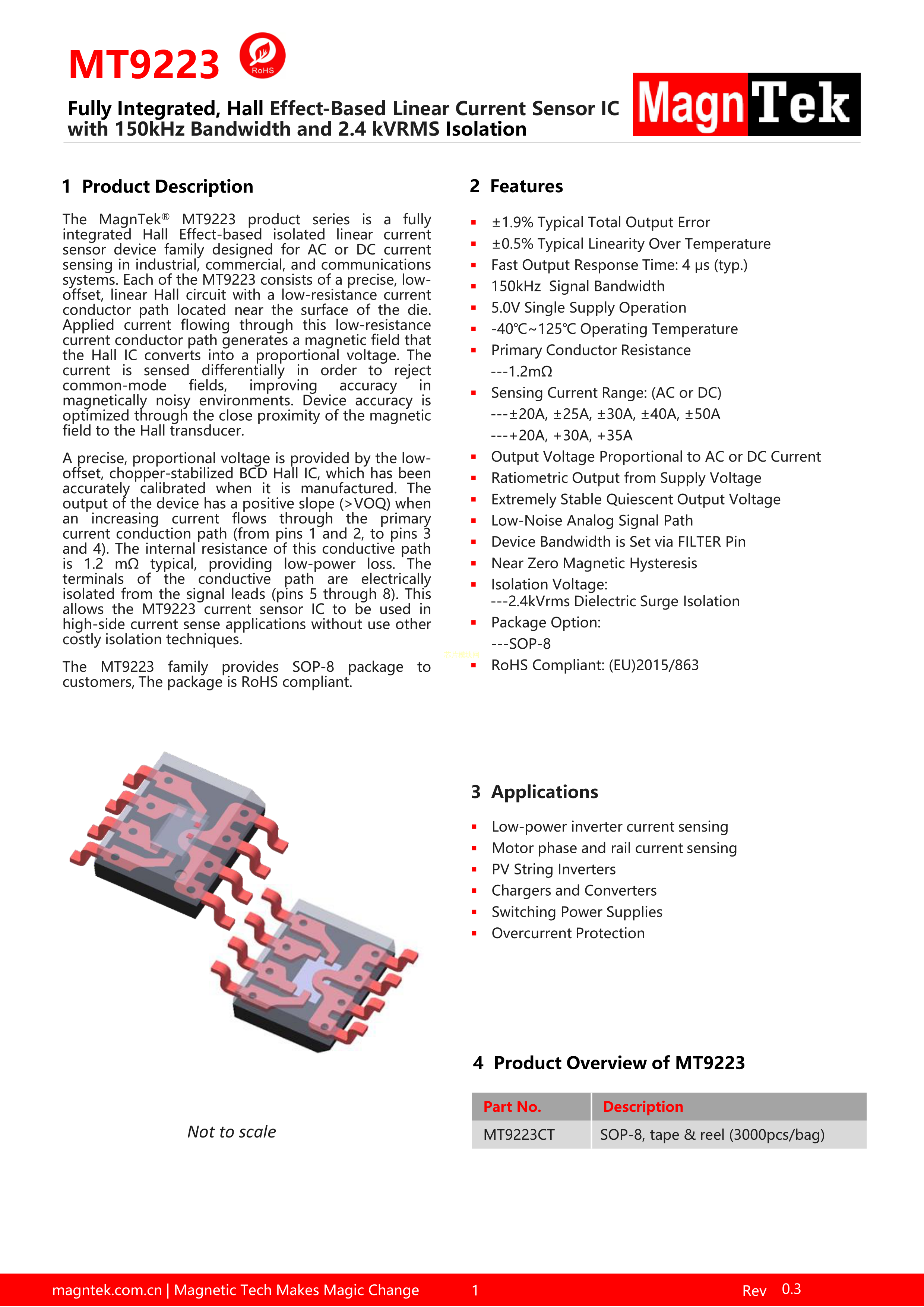 MT9223CT-50BR5数据手册SOP-8封装MagnTek(麦歌恩)PDF规格书,中英文下载