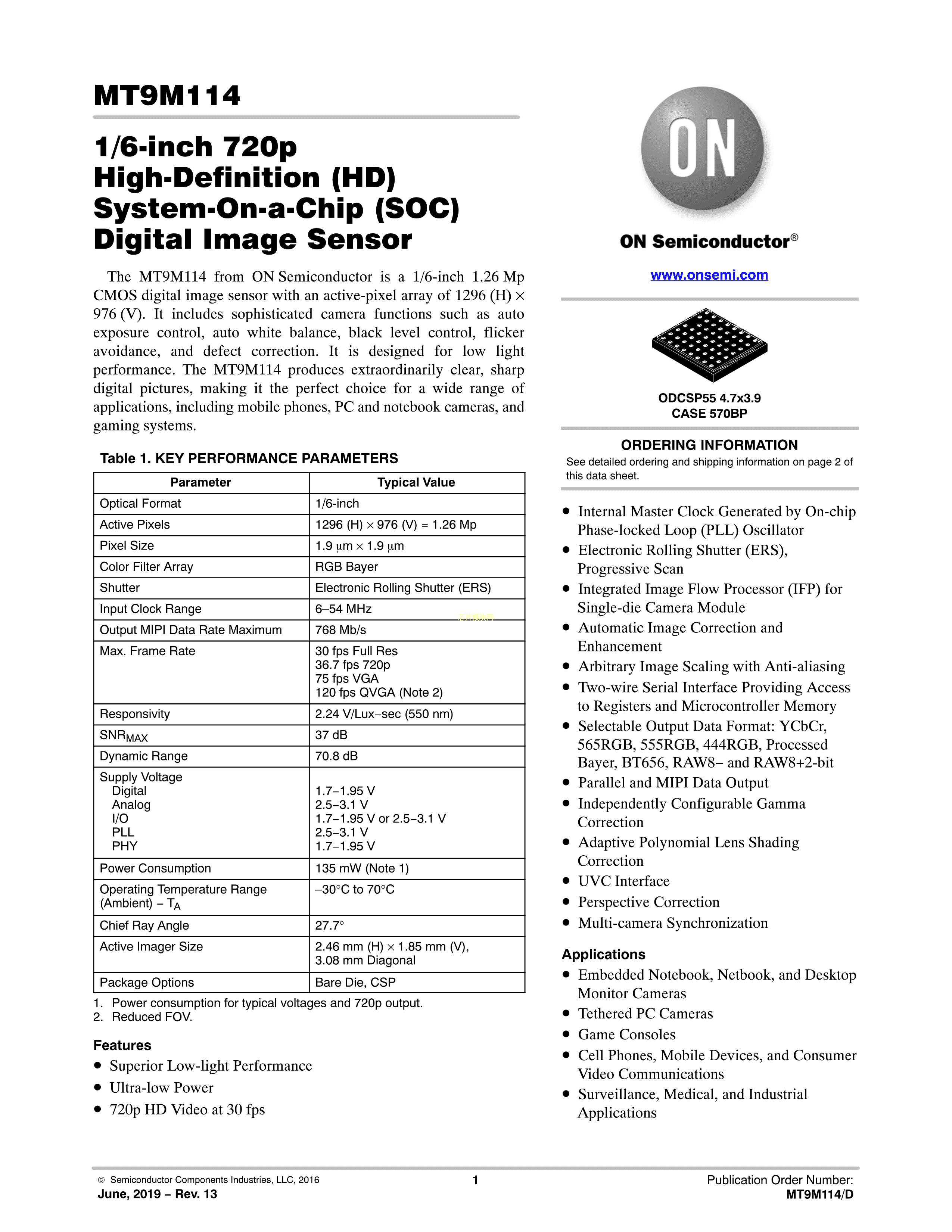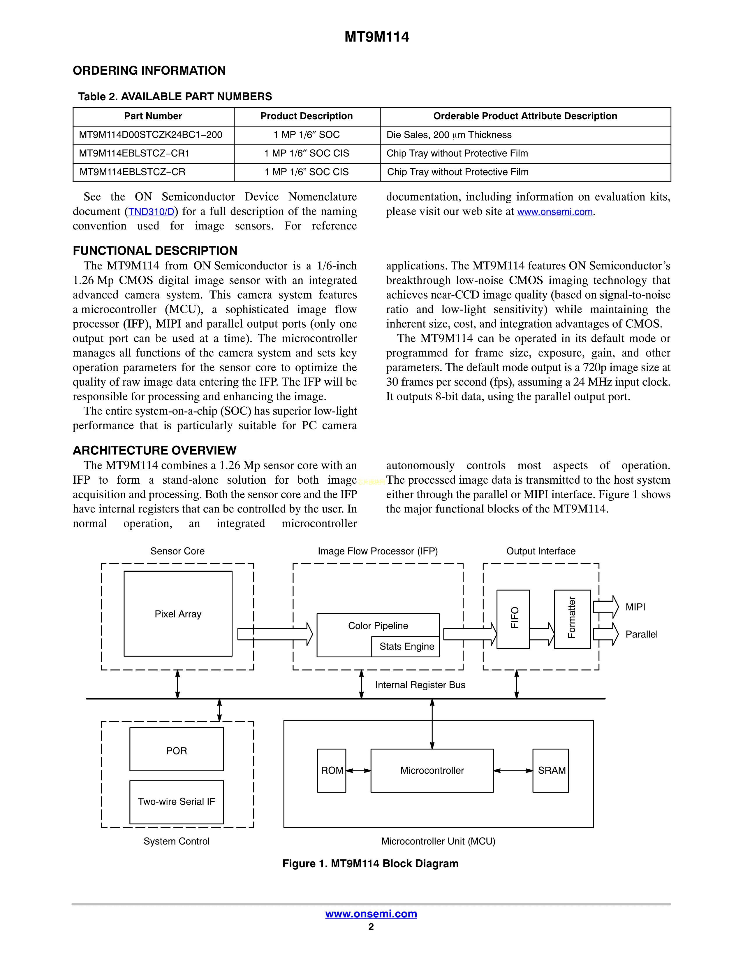 MT9M114EBLSTCZ-CR1数据手册ODCSP554.7x3.9封装onsemi(安森美)PDF规格书,中英文下载