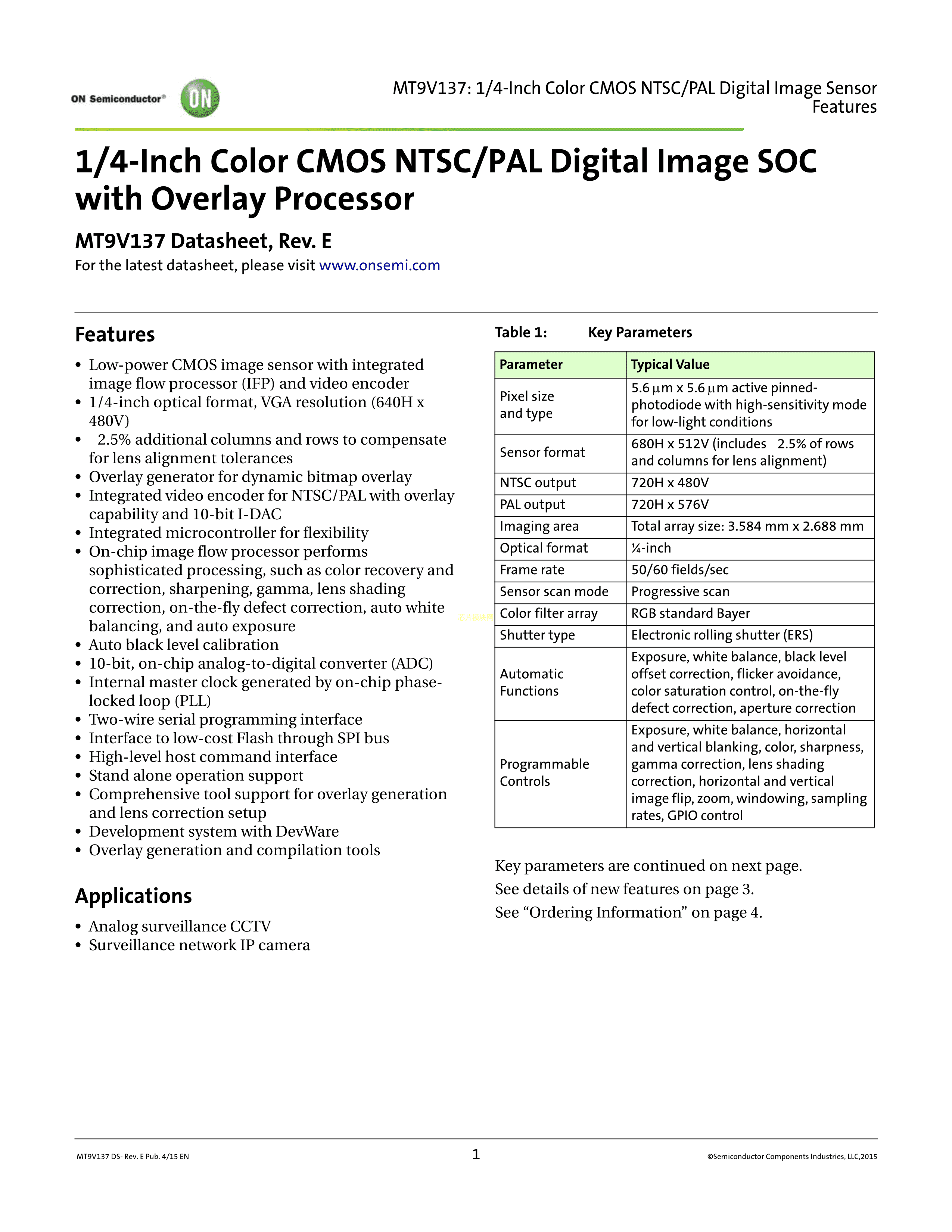 MT9V137C12STC-DR数据手册-封装onsemi(安森美)PDF规格书,中英文下载