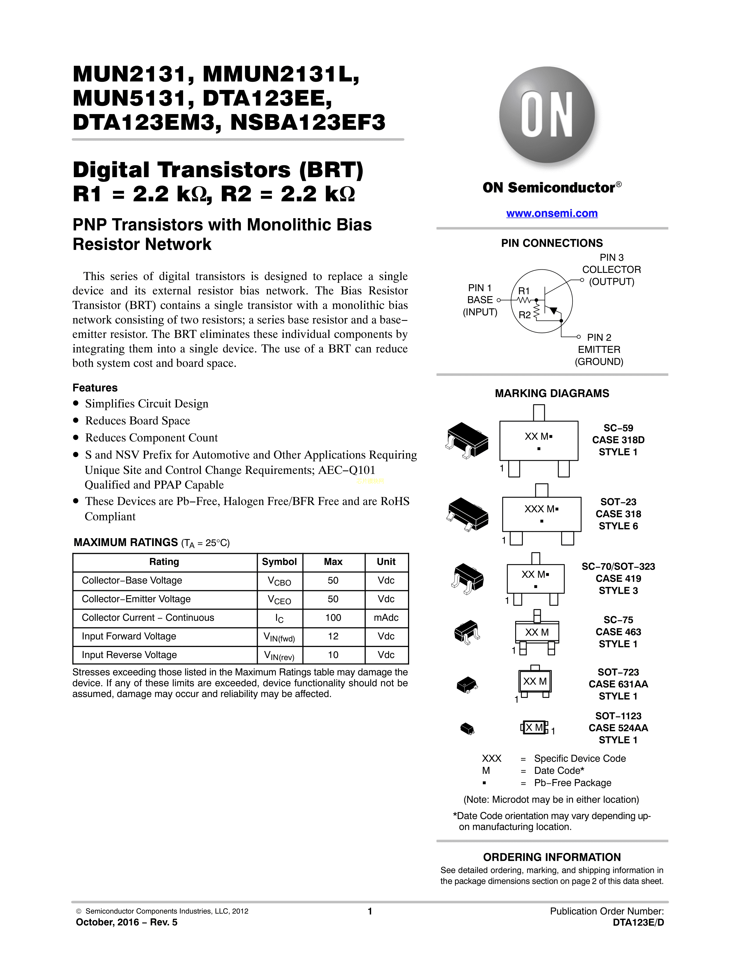 MUN2131T1G数据手册SC-59封装onsemi(安森美)PDF规格书,中英文下载
