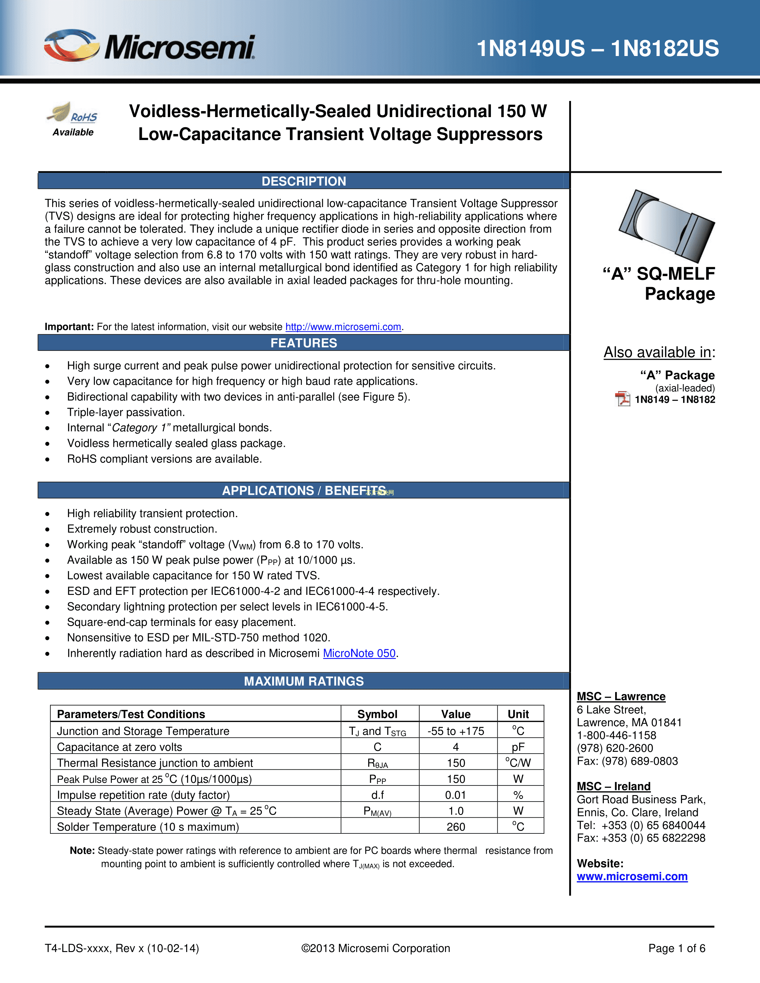 MX1N8158US数据手册-封装Microsemi(美高森美)PDF规格书,中英文下载