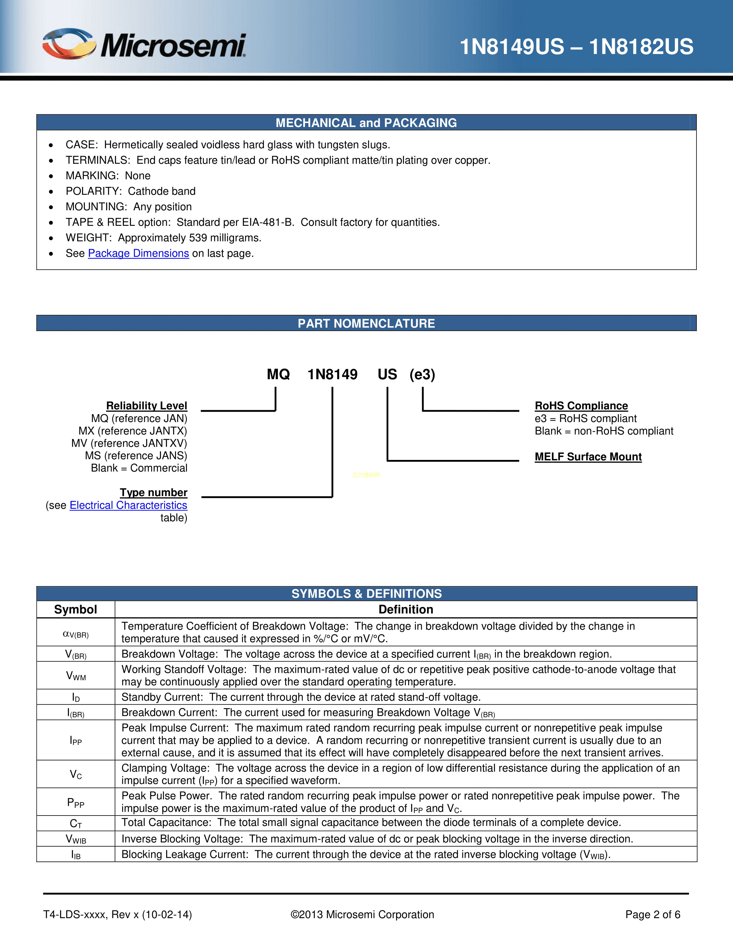 MX1N8160US数据手册-封装Microsemi(美高森美)PDF规格书,中英文下载
