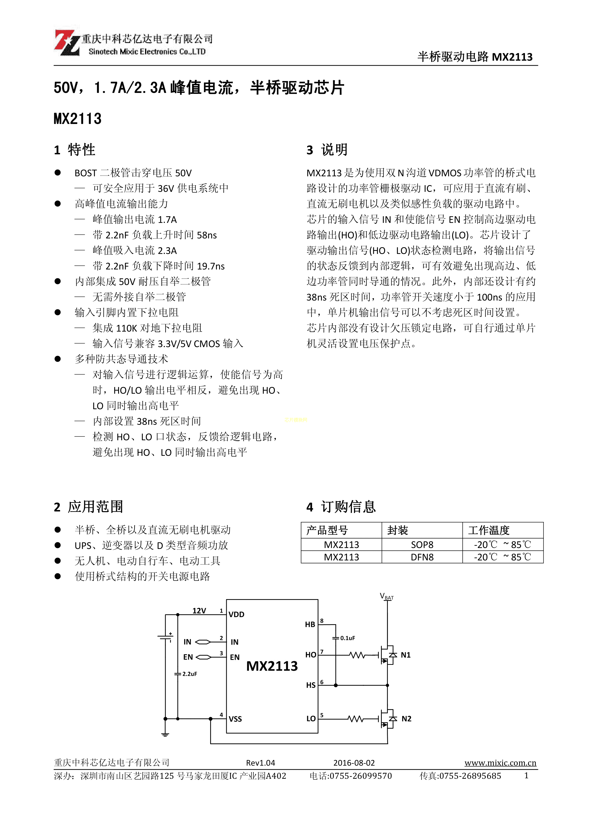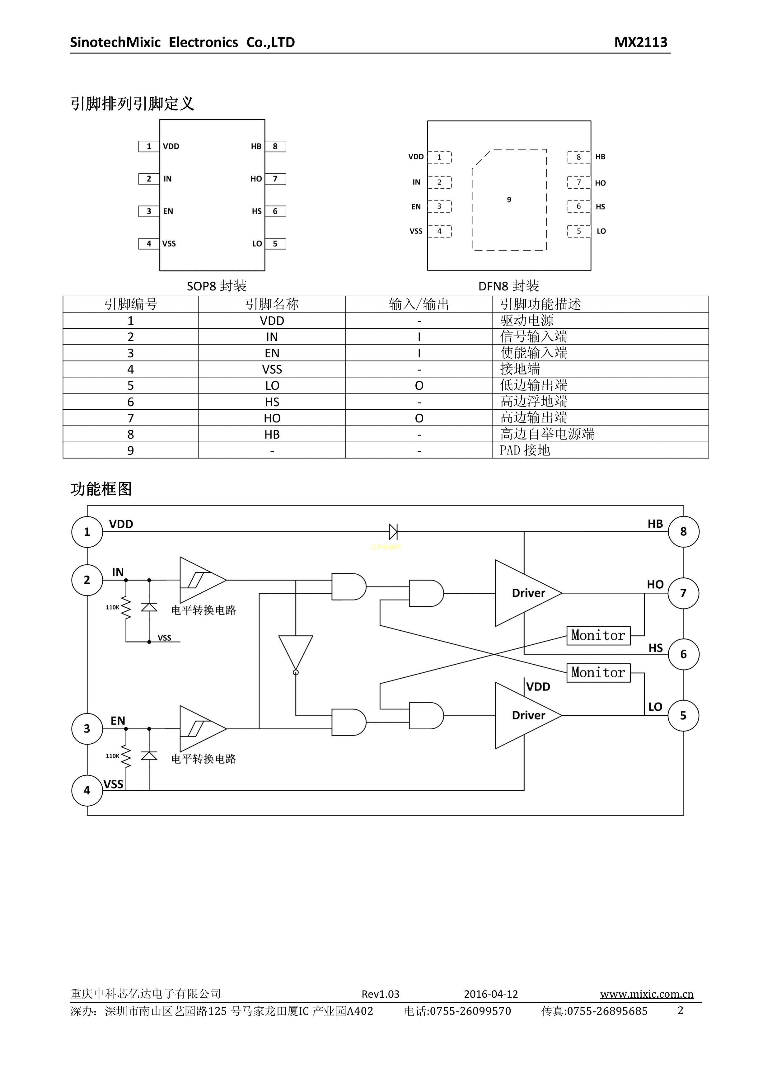 MX2113数据手册DFN-8封装Mixic(中科芯亿达)PDF规格书,中英文下载