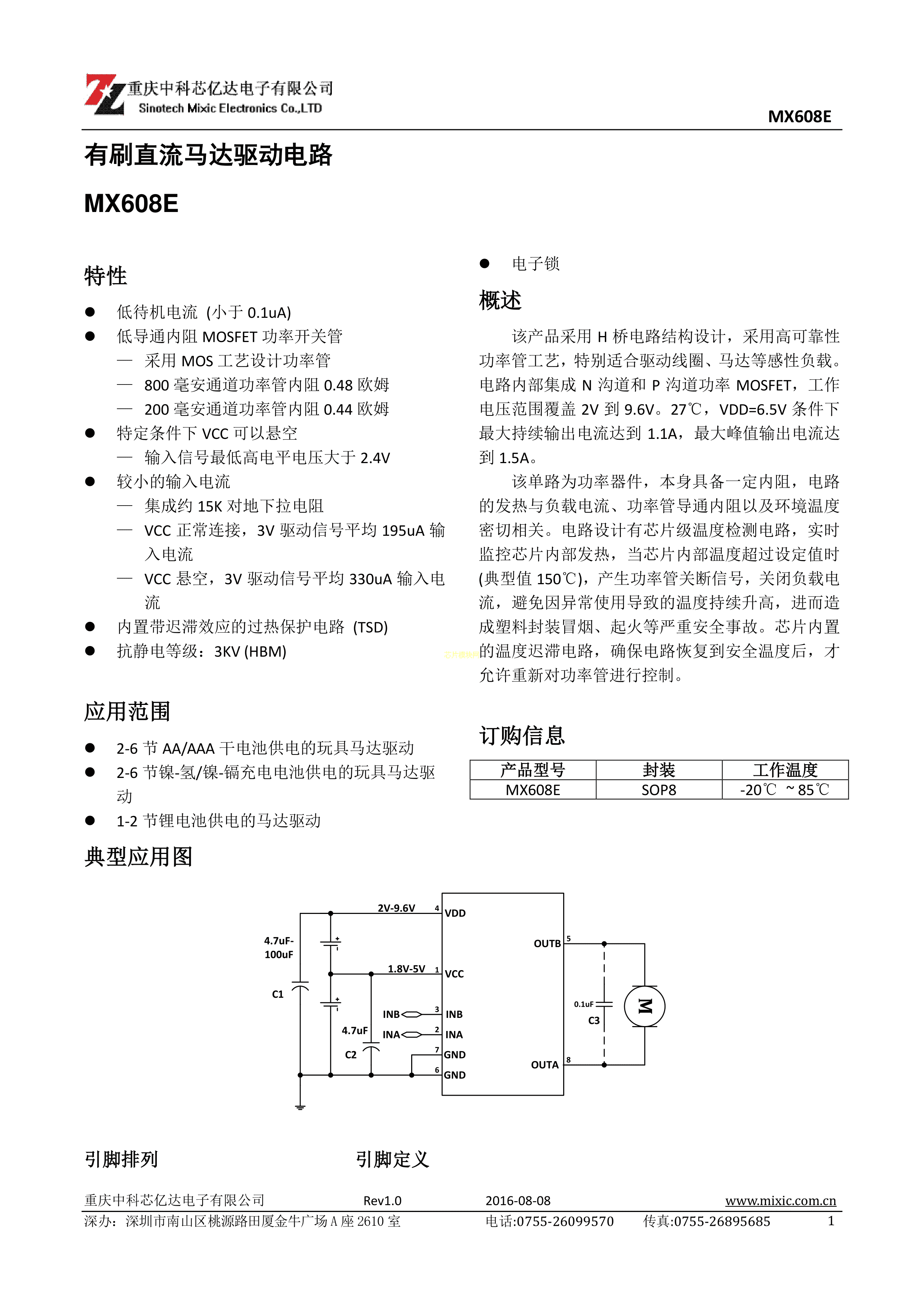 MX608E数据手册SO-8封装Mixic(中科芯亿达)PDF规格书,中英文下载