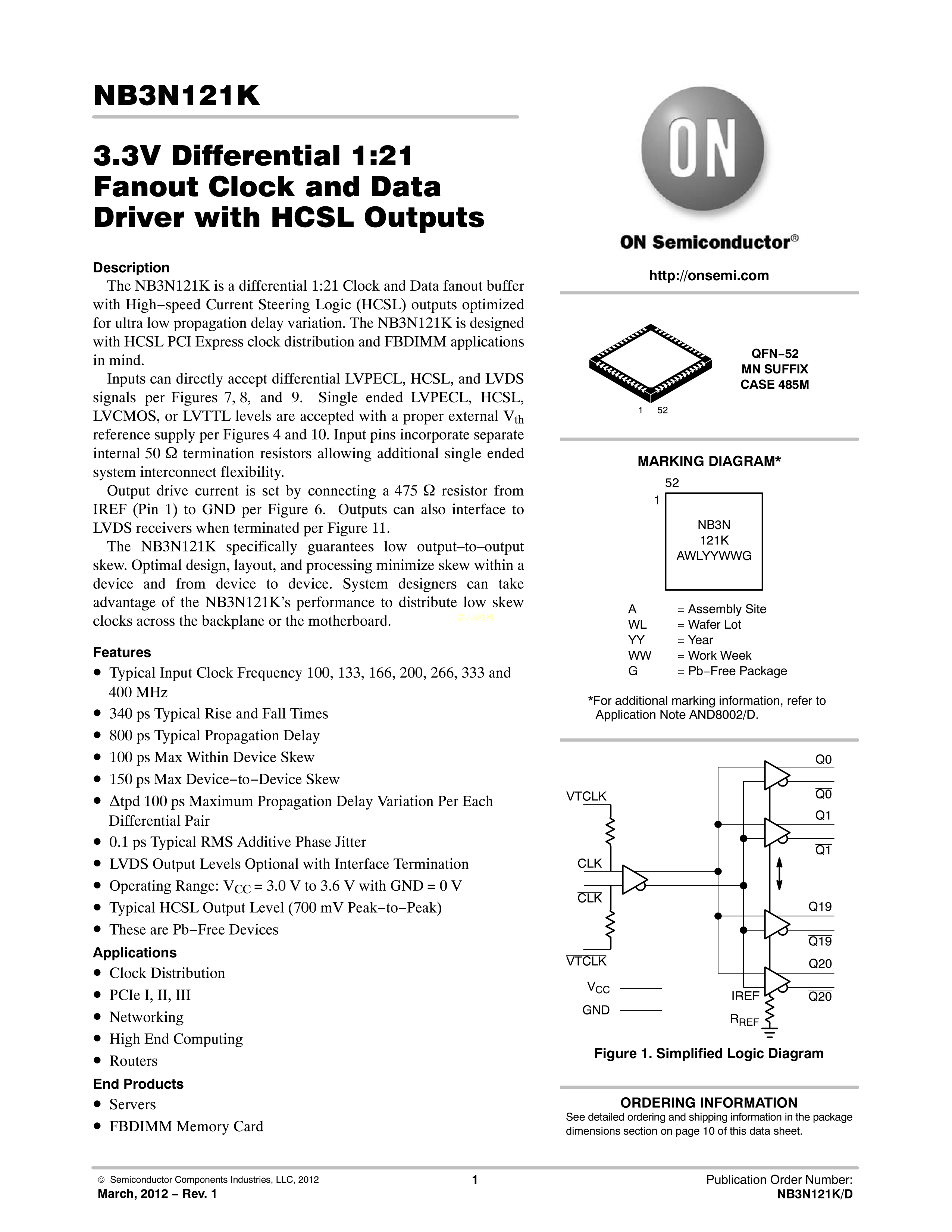 NB3N121KMNR2G数据手册QFN-52封装onsemi(安森美)PDF规格书,中英文下载