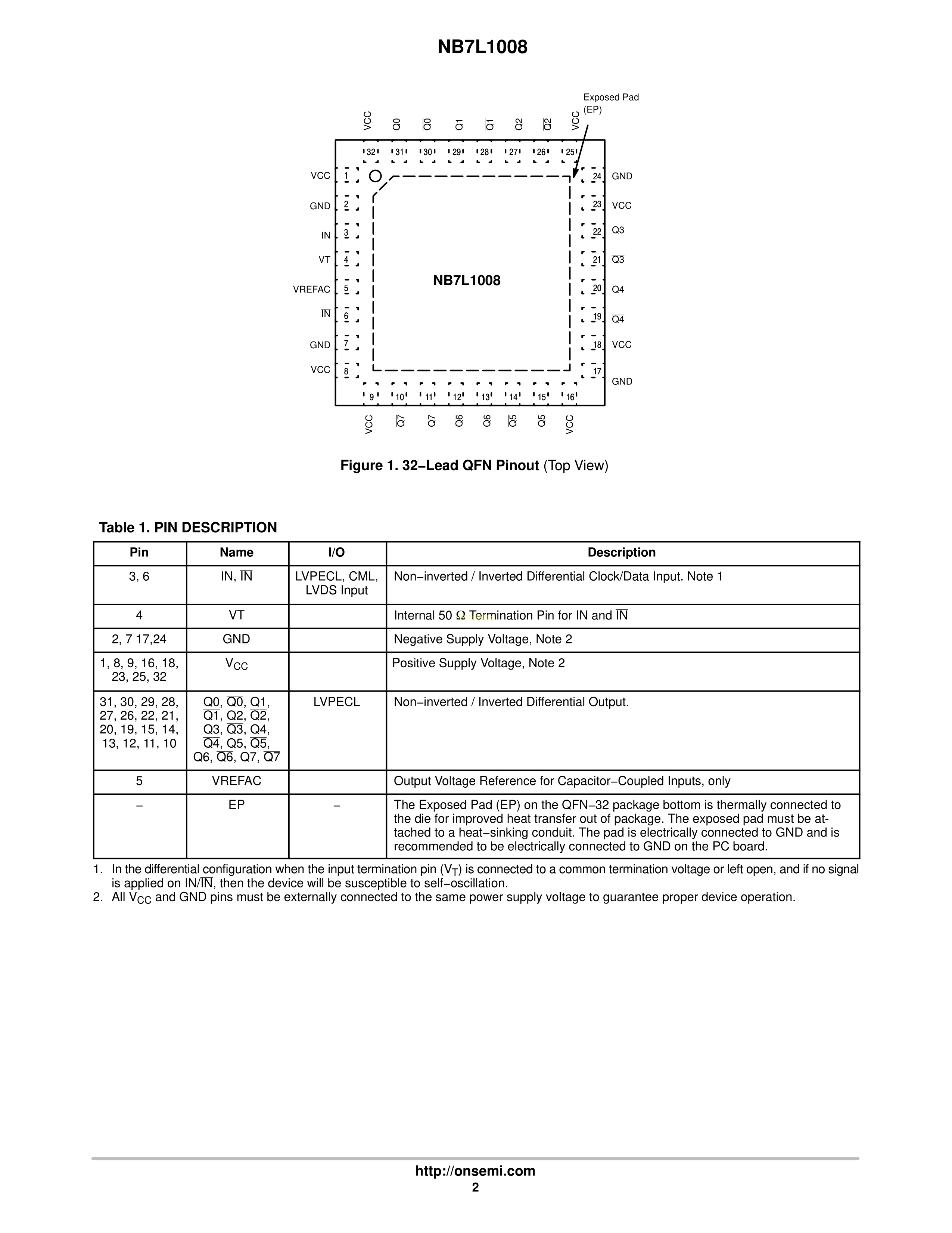 NB7L1008MNG数据手册QFN-32封装onsemi(安森美)PDF规格书,中英文下载
