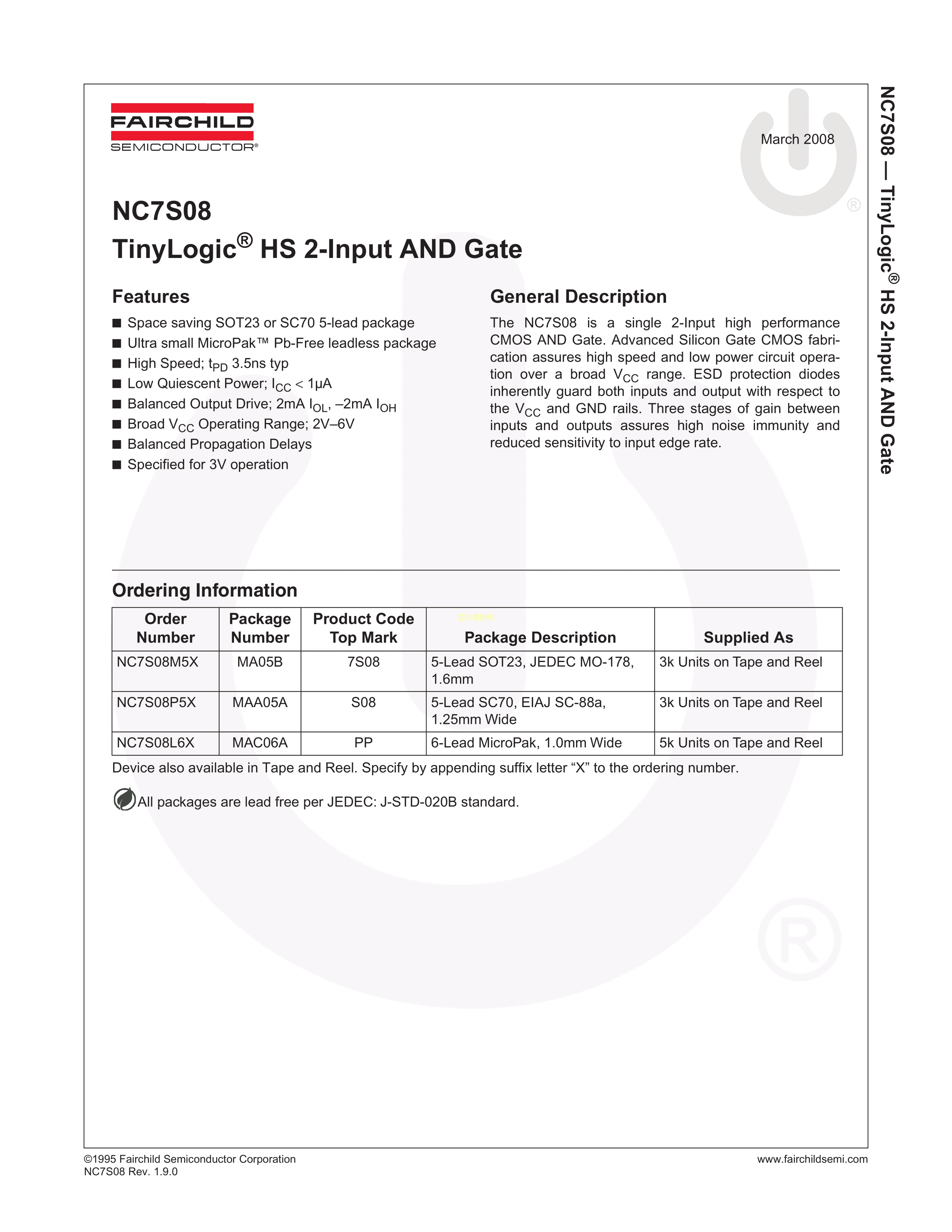 NC7S08M5X数据手册SOT-23-5封装onsemi(安森美)PDF规格书,中英文下载
