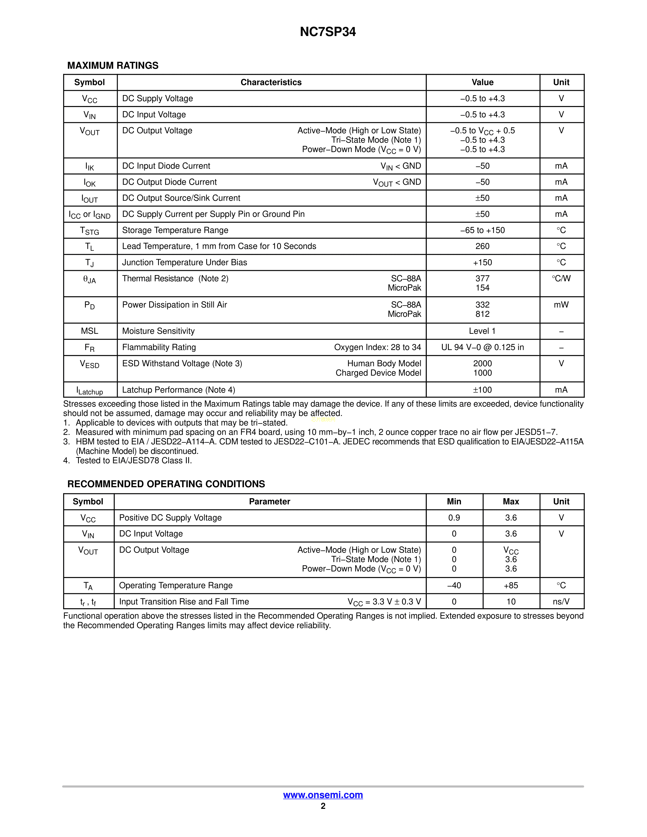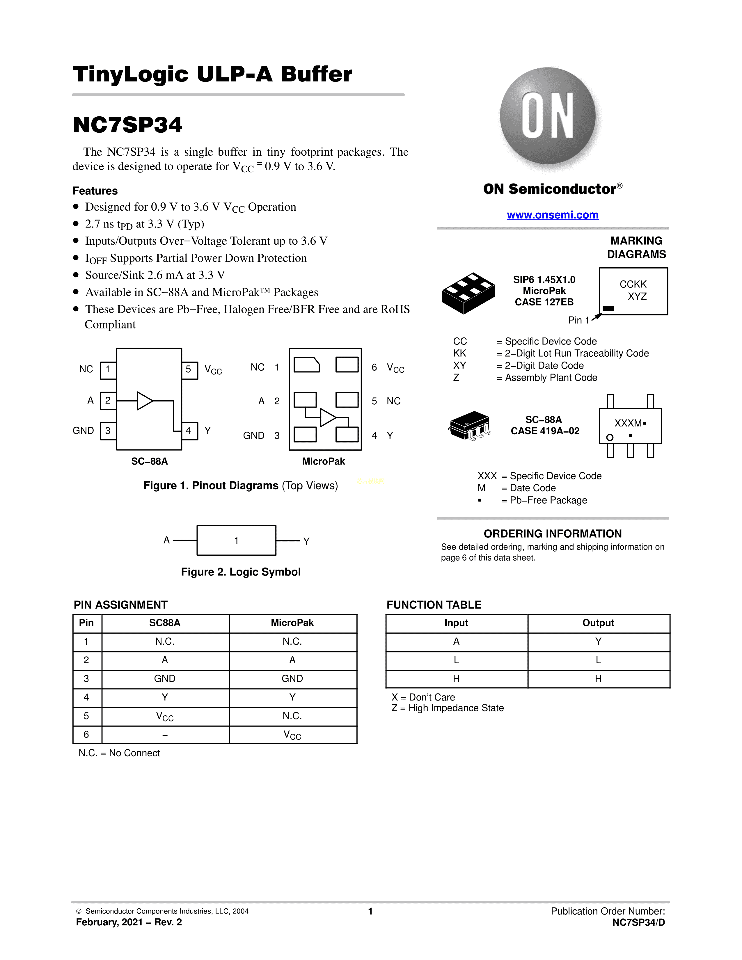 NC7SP34L6X数据手册MicroPak封装onsemi(安森美)PDF规格书,中英文下载