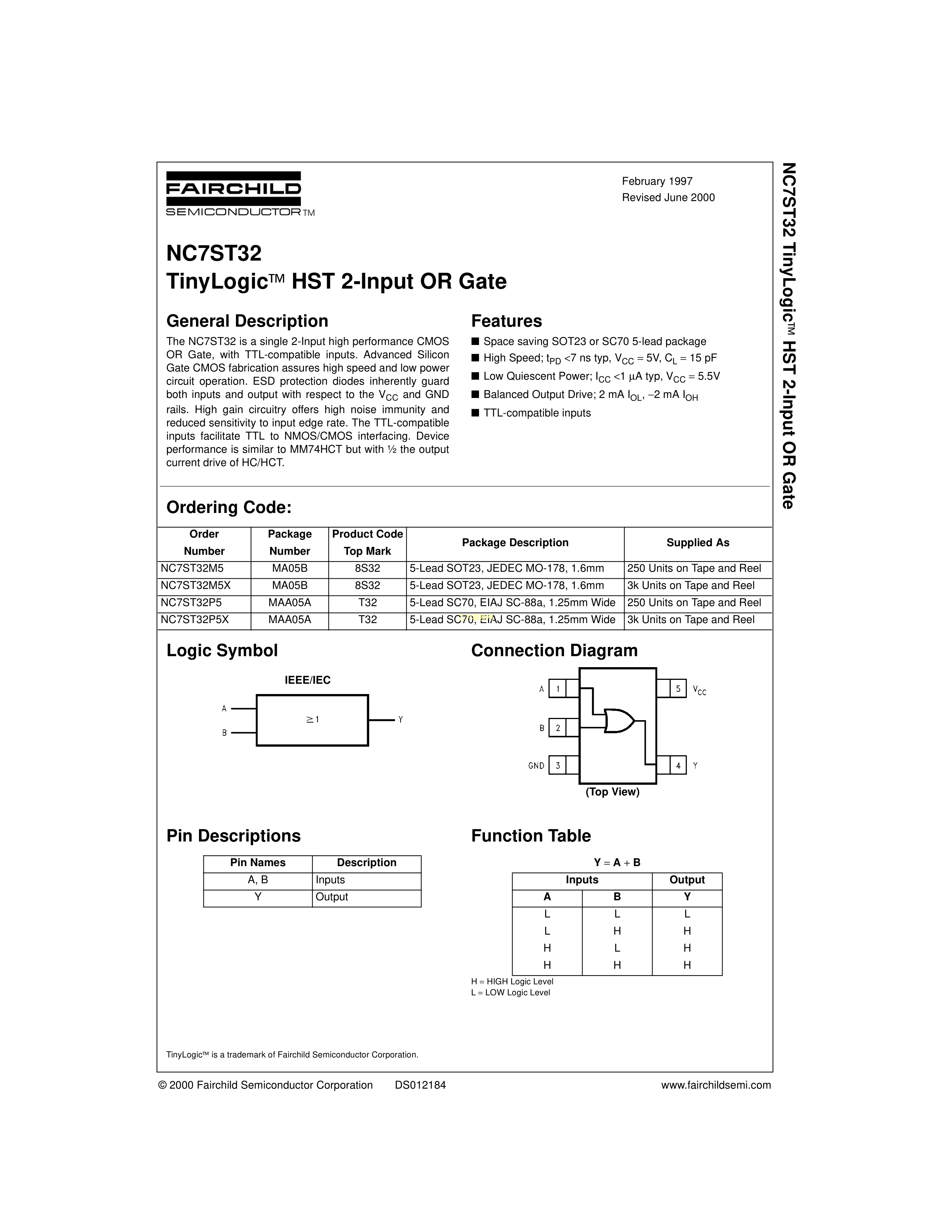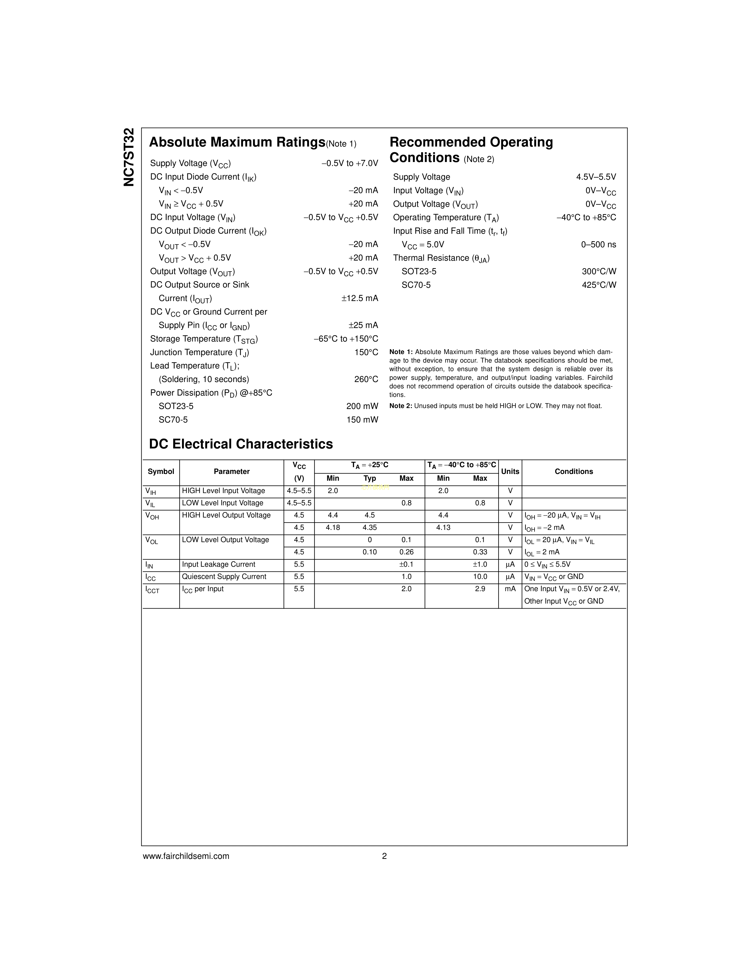 NC7ST32M5X数据手册SOT-23-5封装onsemi(安森美)PDF规格书,中英文下载