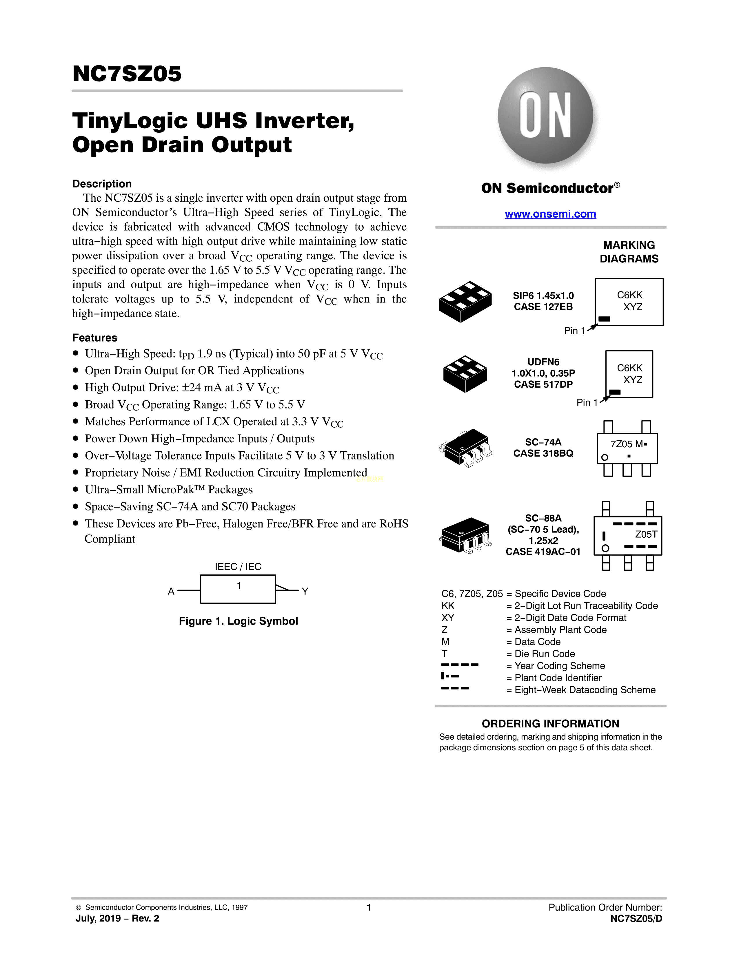 NC7SZ05M5X数据手册SC-74A封装onsemi(安森美)PDF规格书,中英文下载