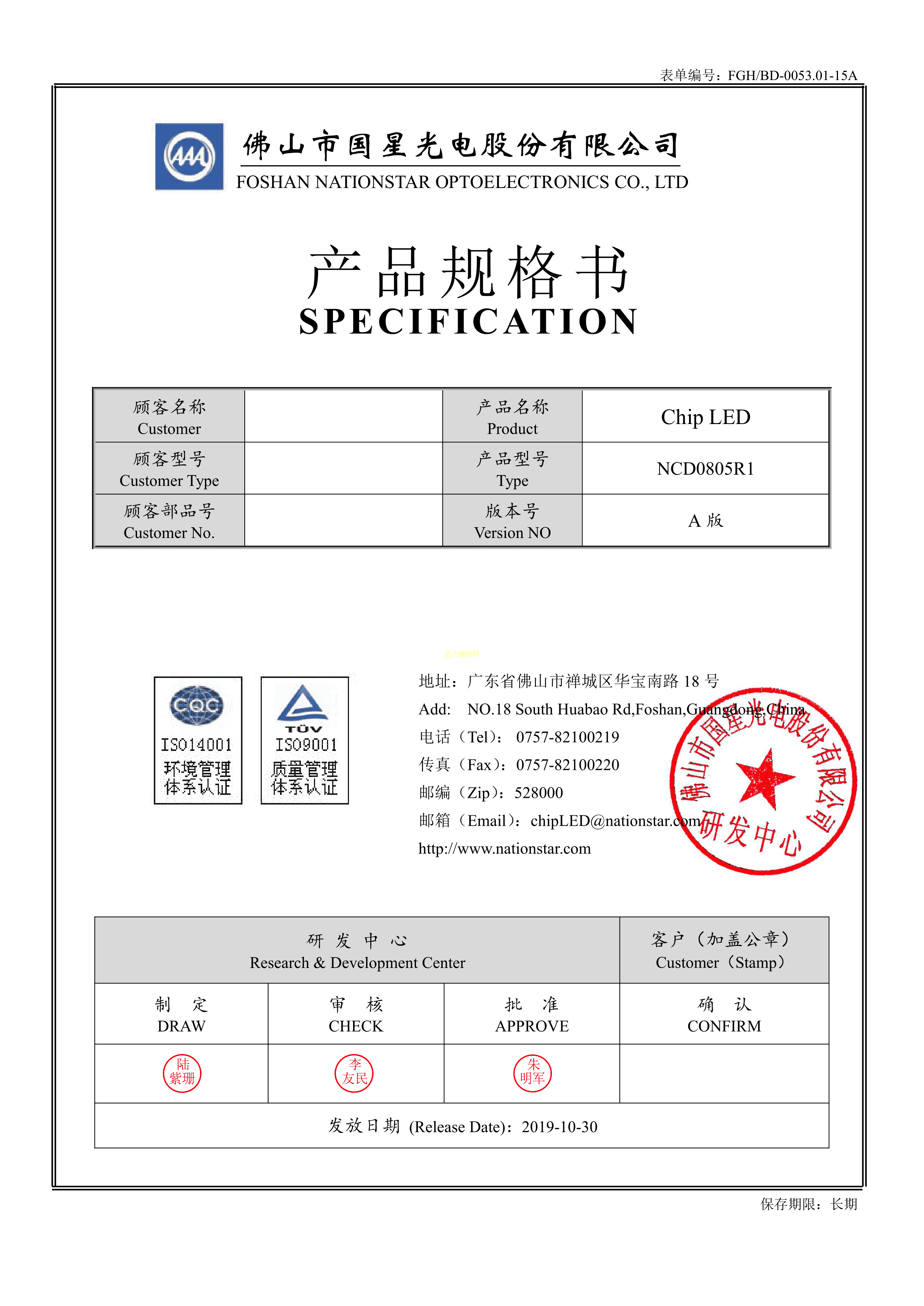 NCD0805R1数据手册0805封装国星光电PDF规格书,中英文下载