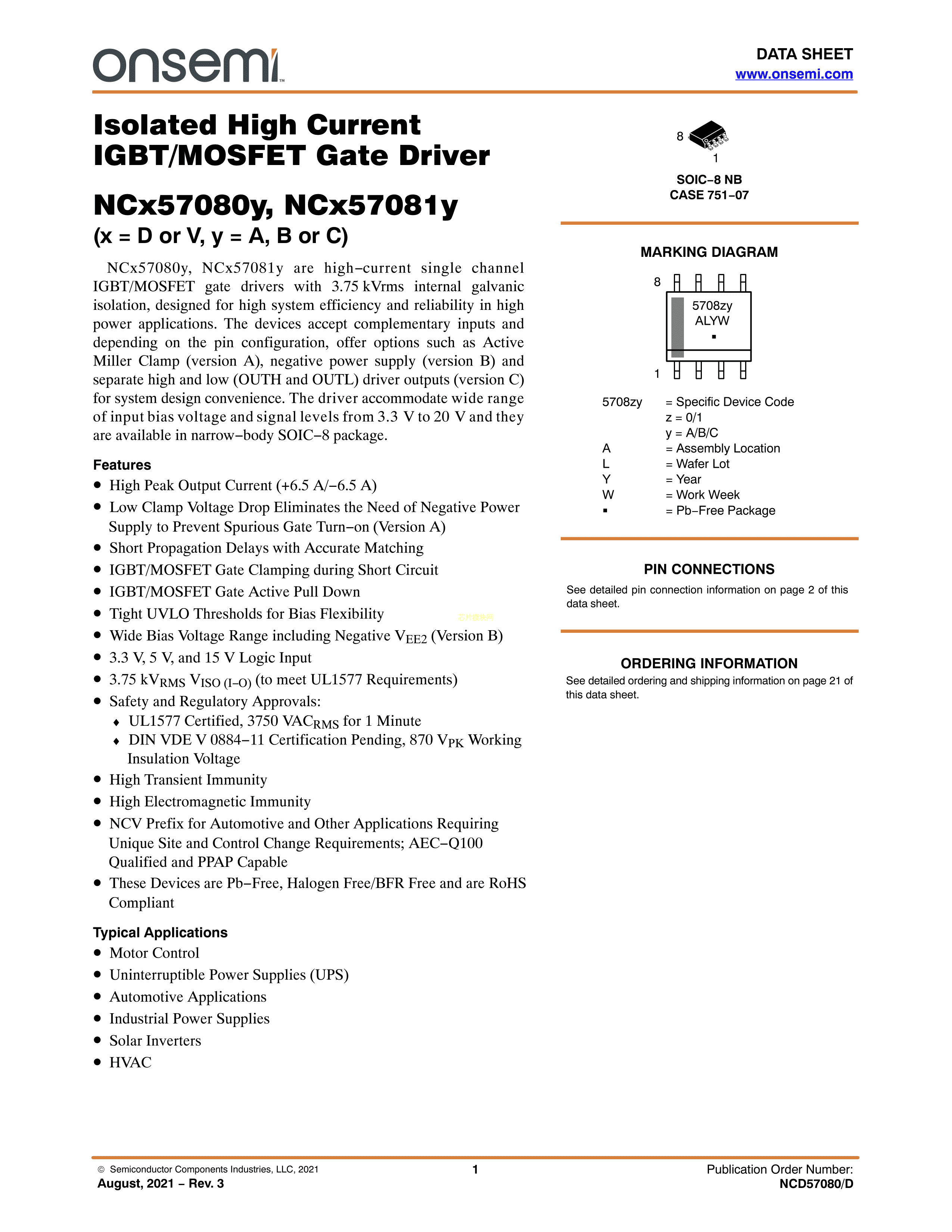 NCD57080CDR2G数据手册SOIC-8封装onsemi(安森美)PDF规格书,中英文下载