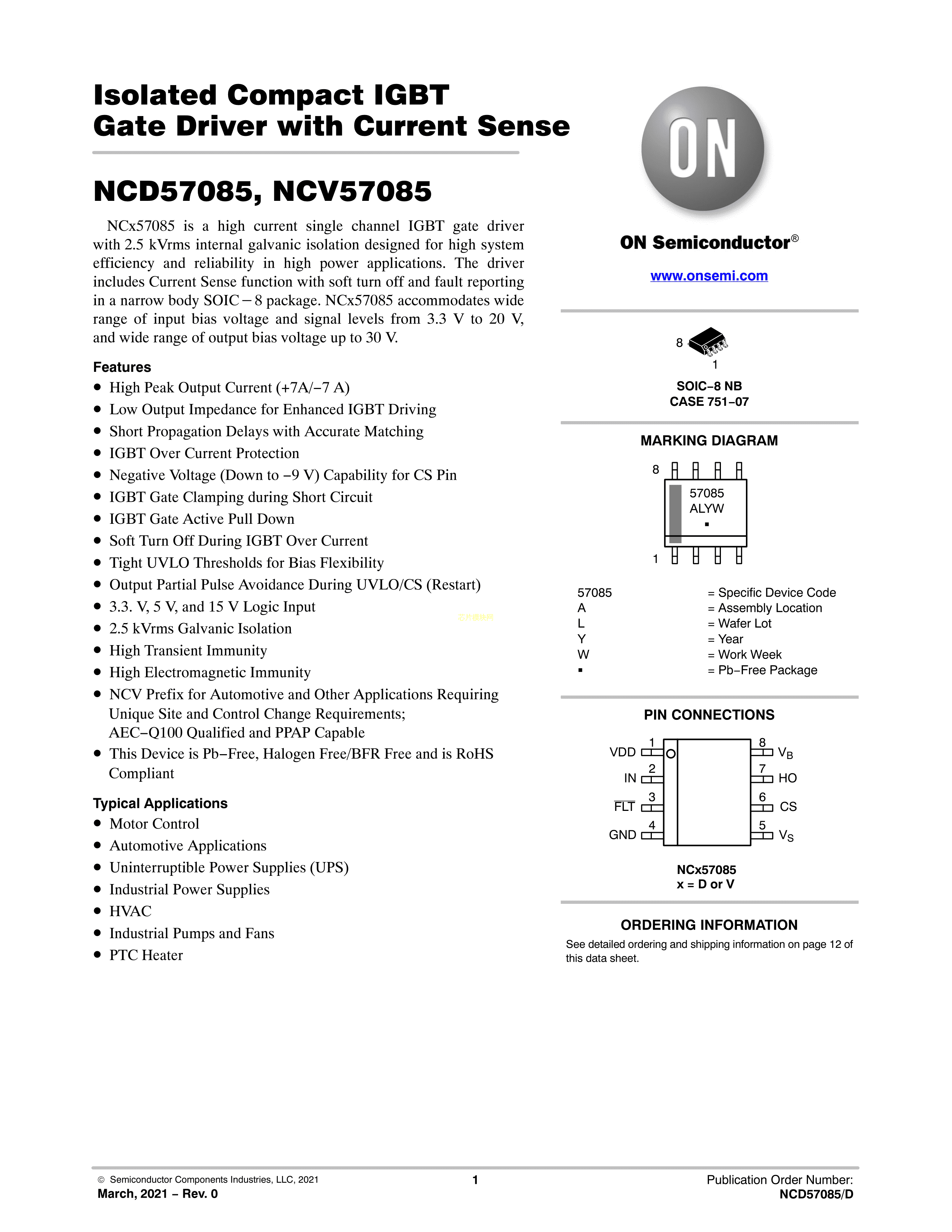 NCD57085DR2G数据手册SOIC-8封装onsemi(安森美)PDF规格书,中英文下载