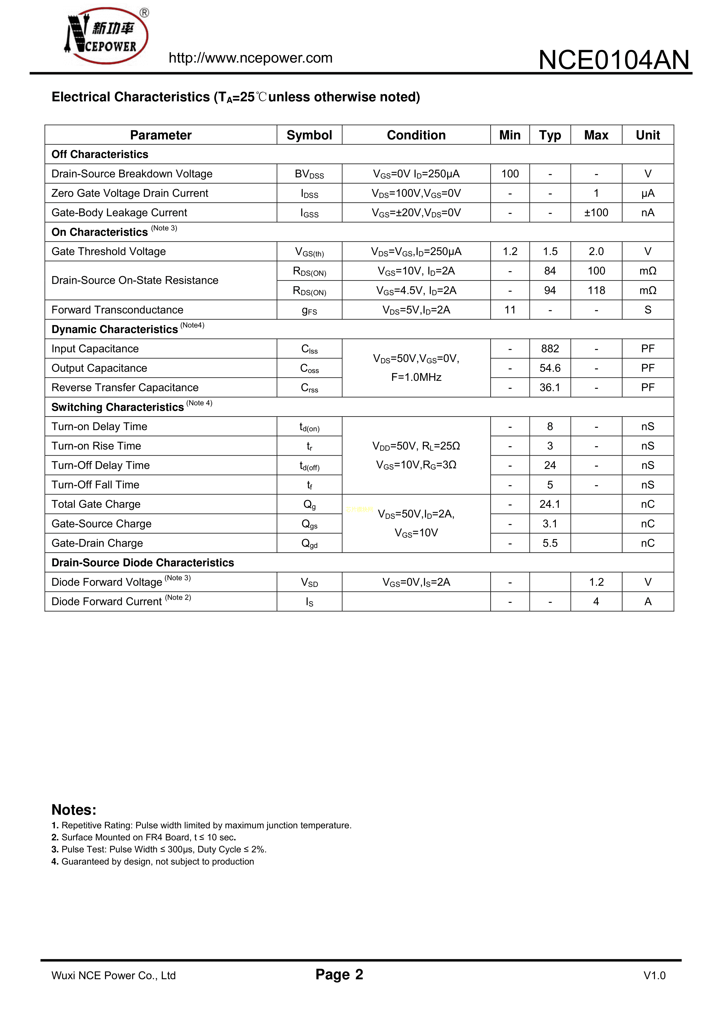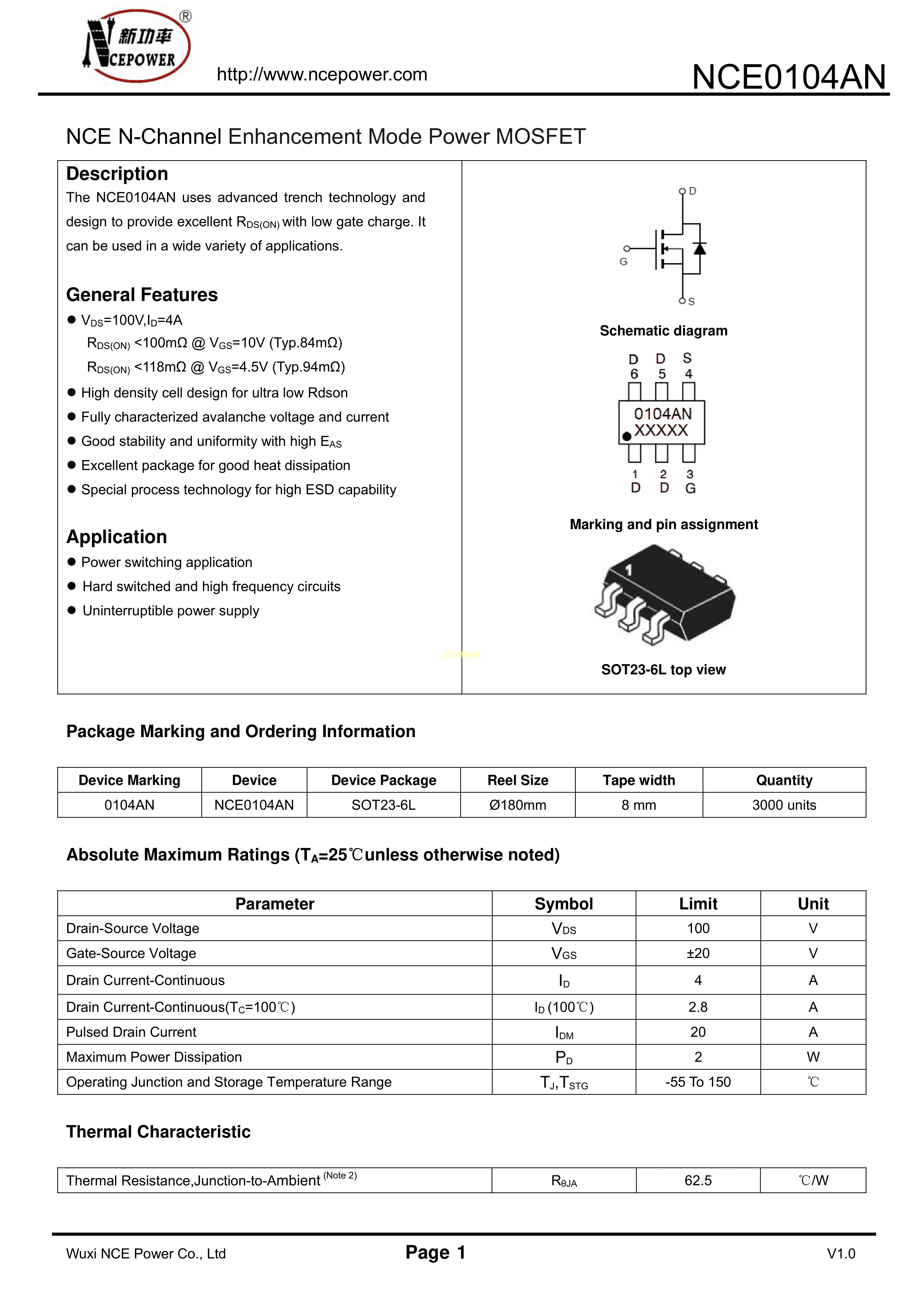 NCE0104ANPDF规格书,中英文下载