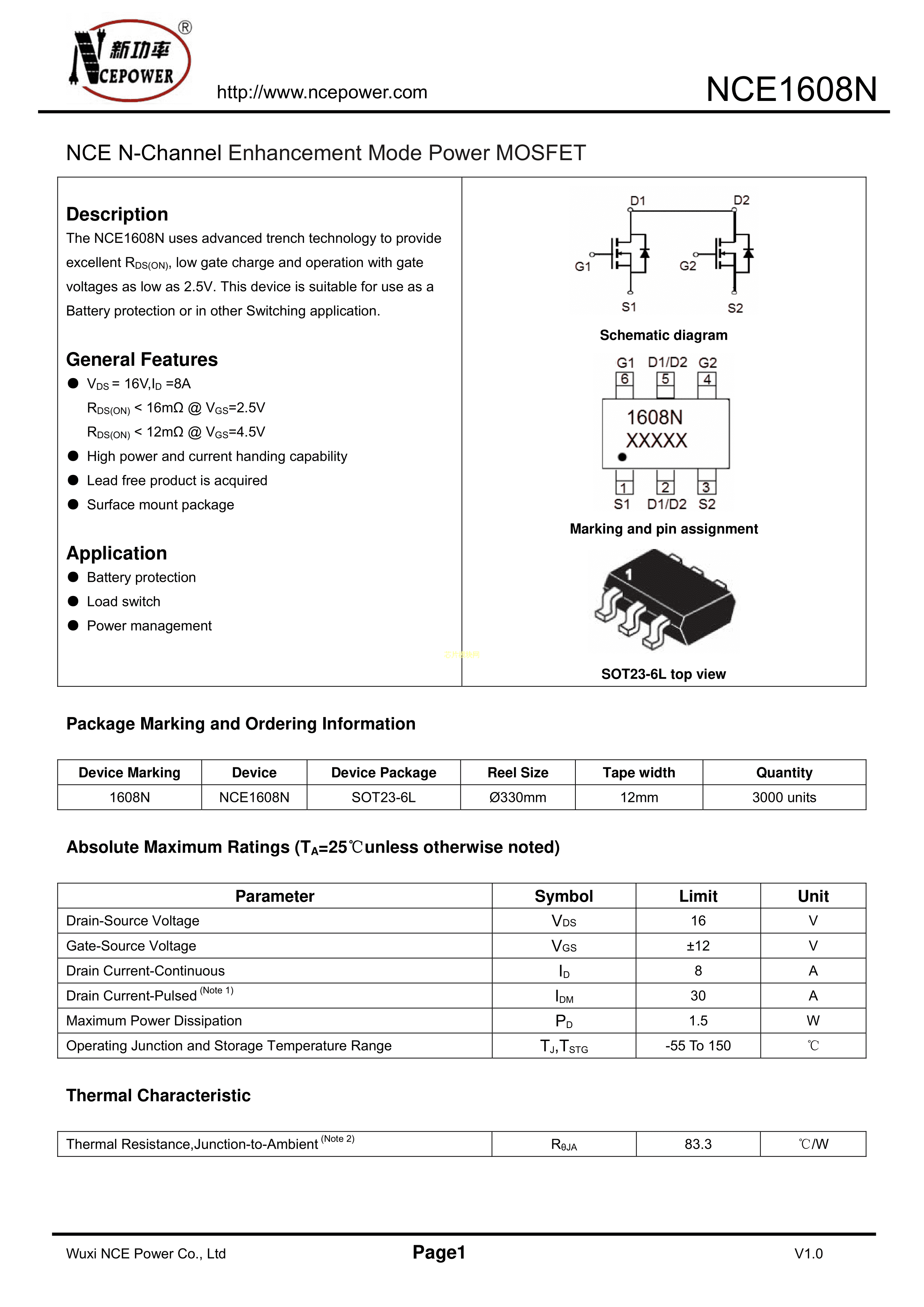 NCE1608NPDF规格书,中英文下载