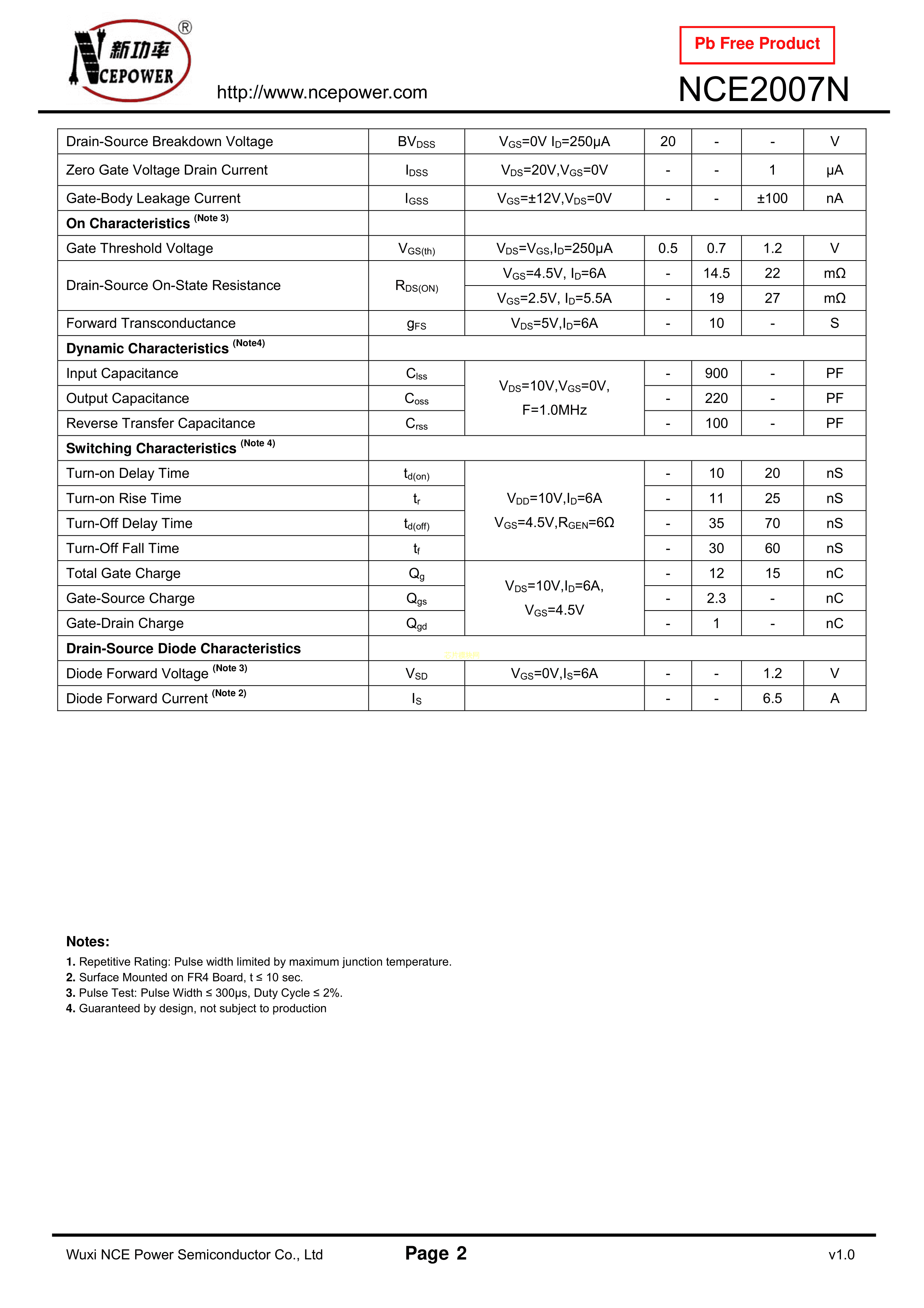 NCE2007NPDF规格书,中英文下载
