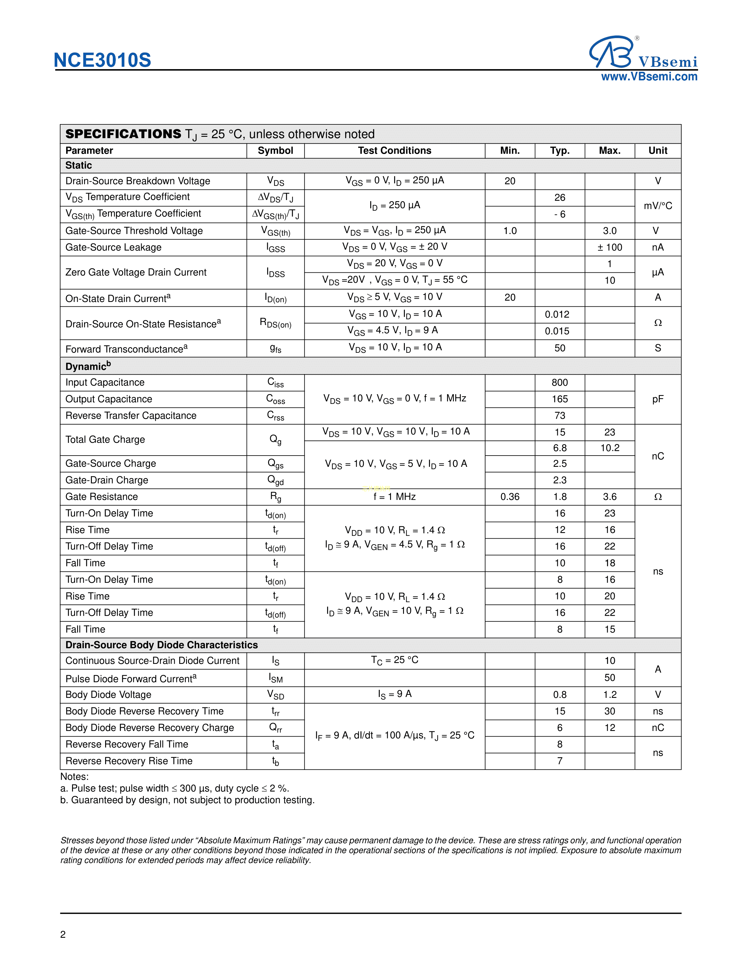NCE3010S数据手册SOP-8封装VBsemi(台湾微碧)PDF规格书,中英文下载